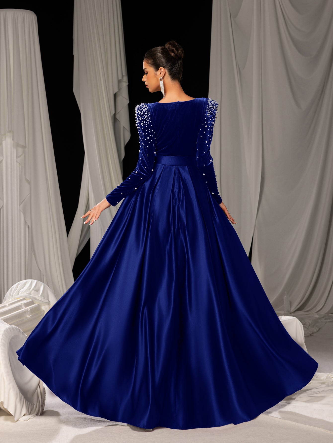 ✔️ Details: The pearls embellishments on the V-neck and sleeves, and an invisible back zipper for seamless elegance. Reinforced stitching secures the side slit and hem.