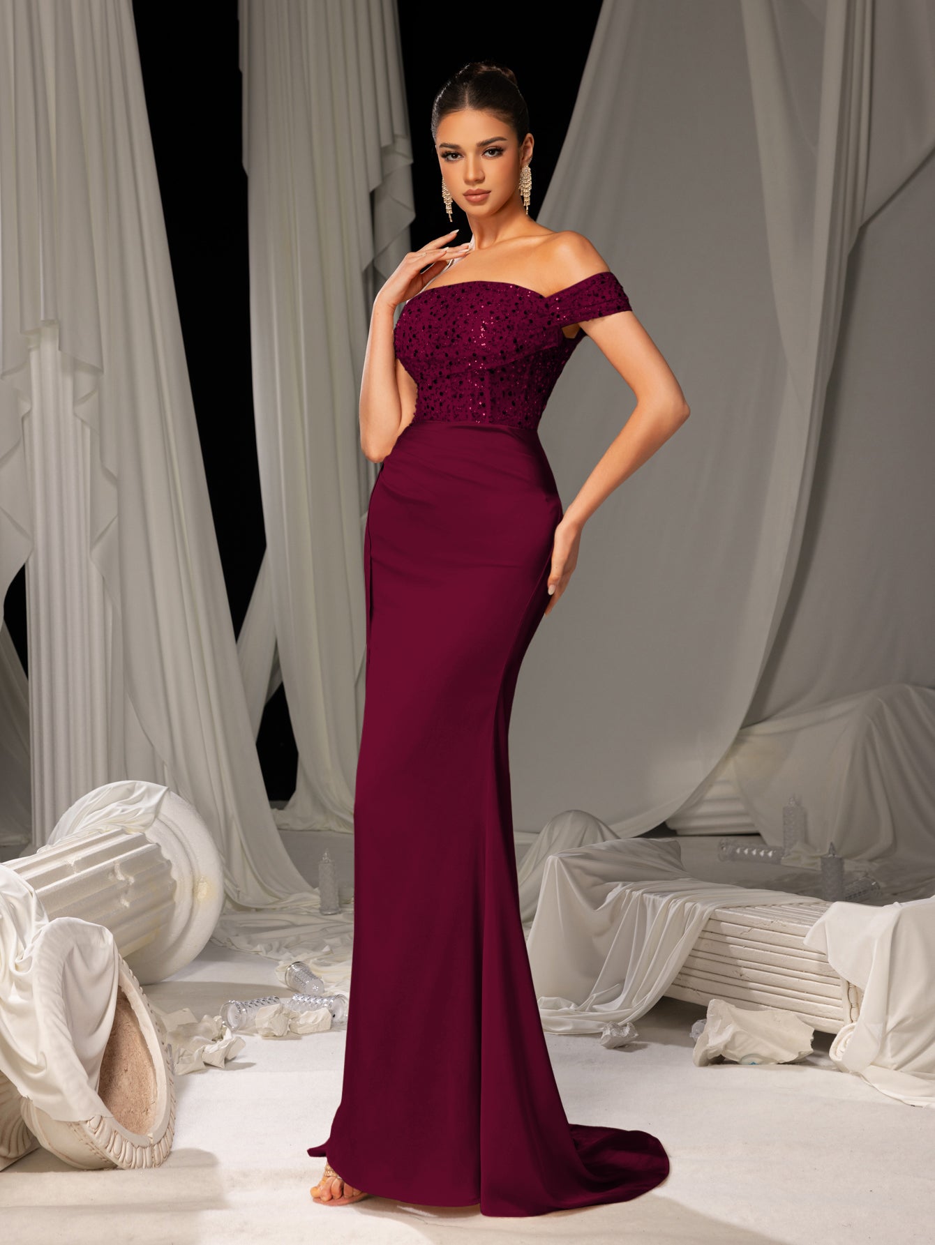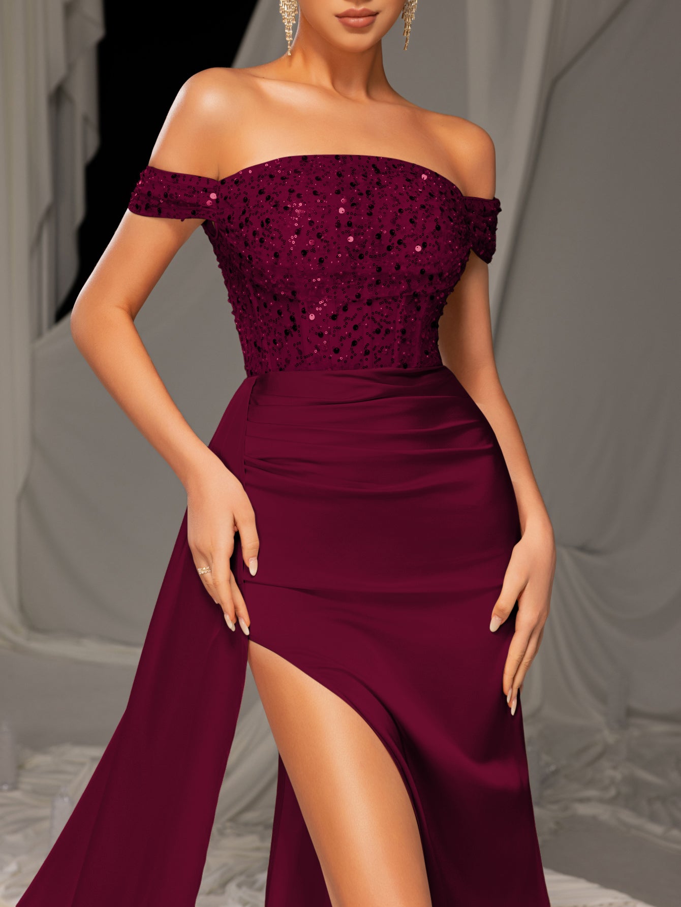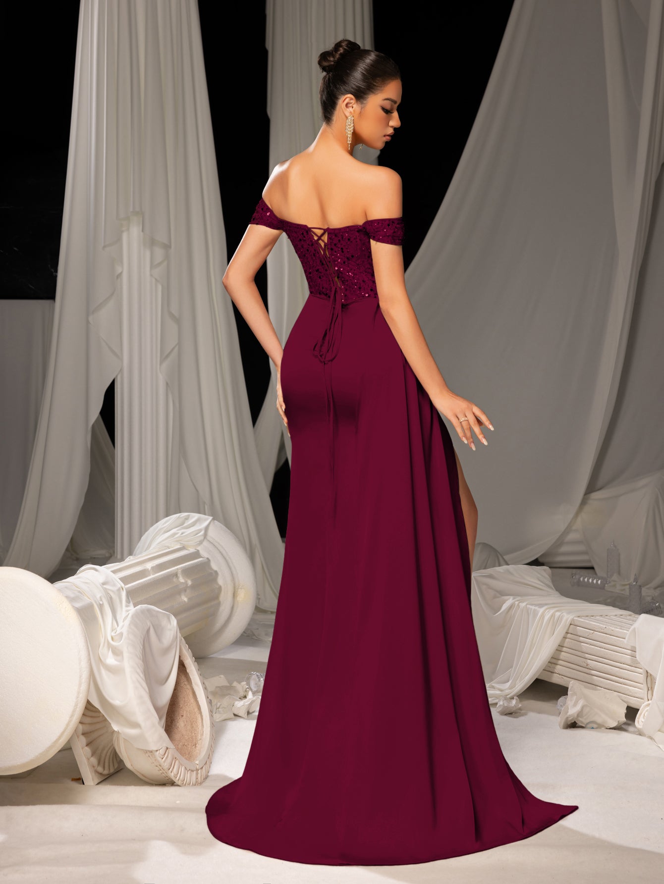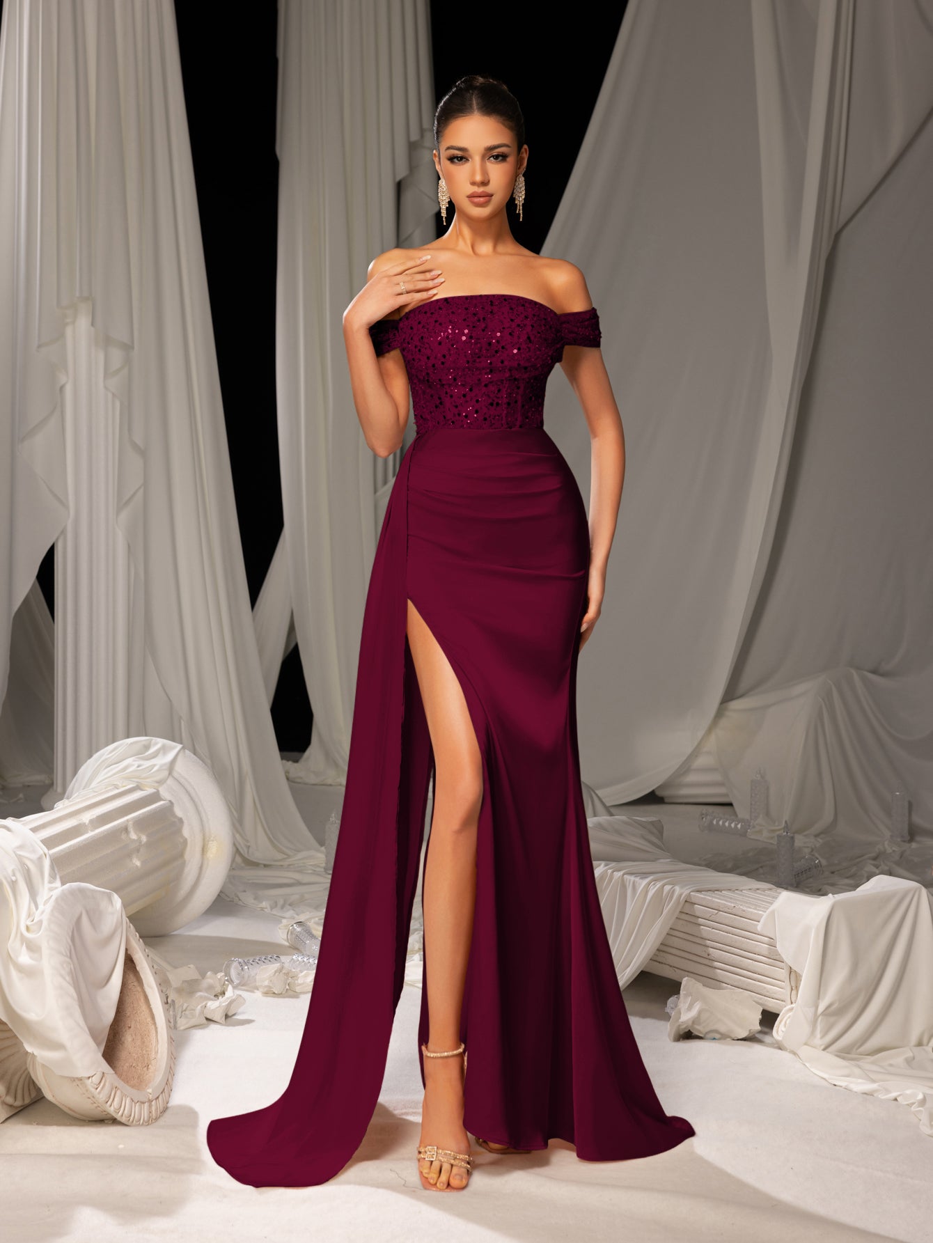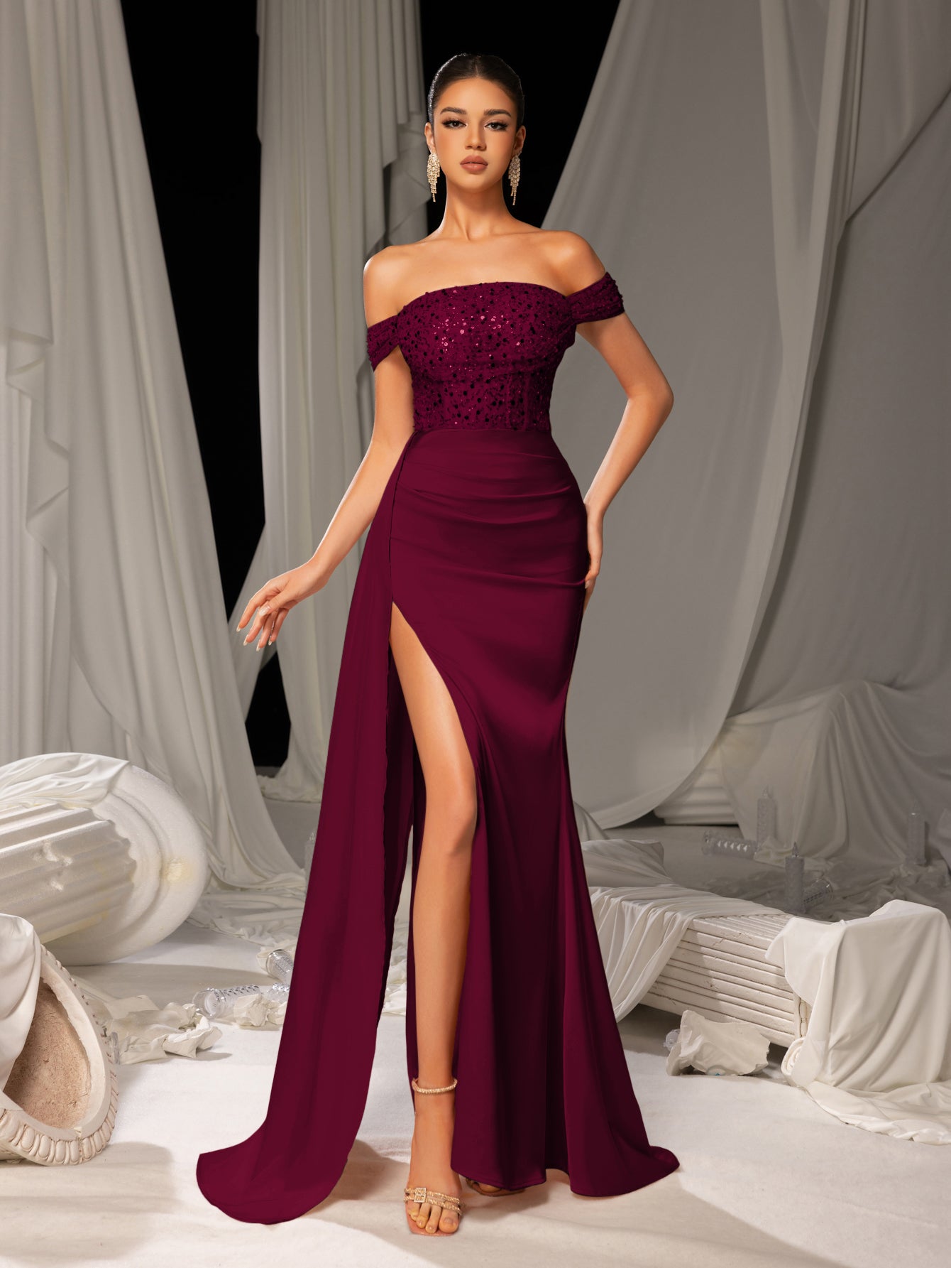 Design Highlights ✨ Chic Sophistication: This off-shoulder gown effortlessly blends elegance with modern allure. The high slit...