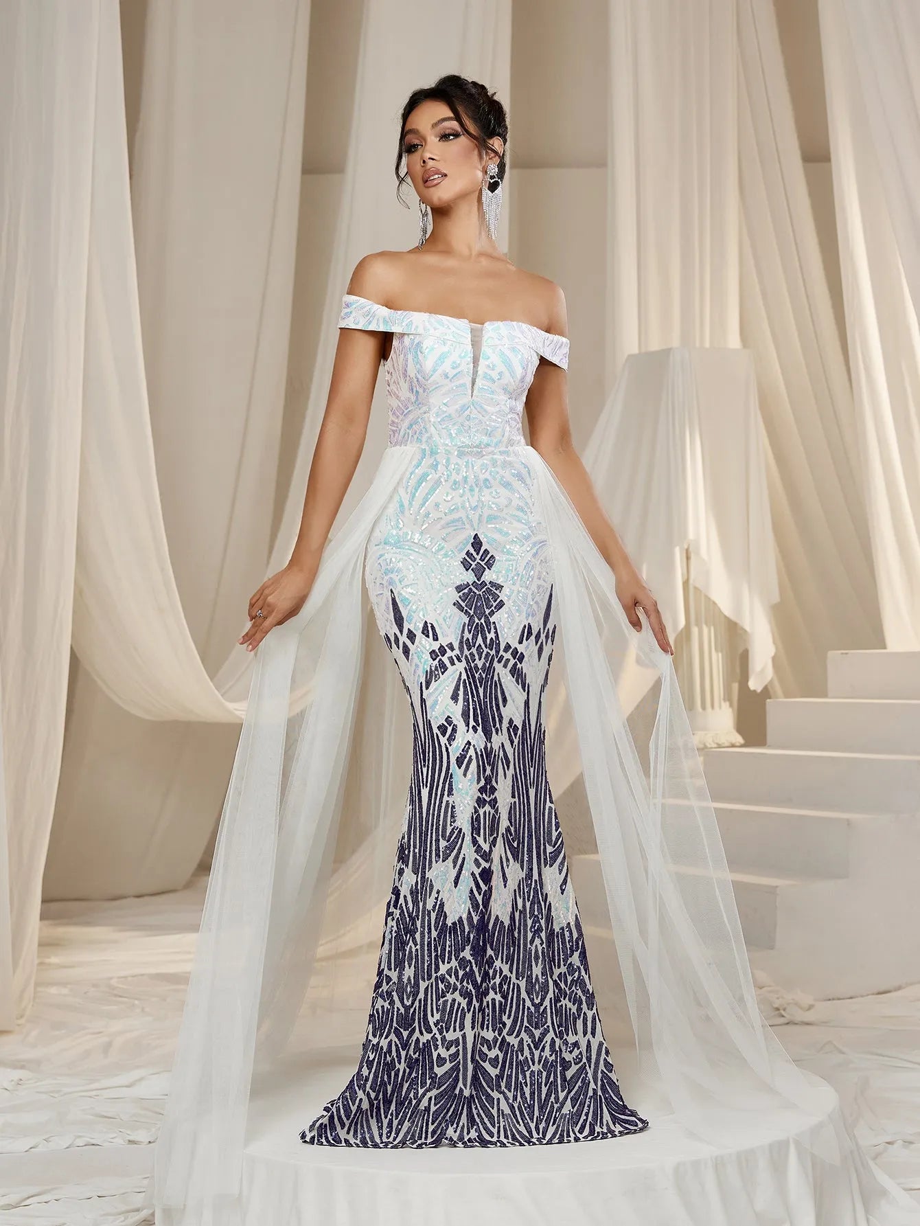 Dazzle at any event in our stunning sequined gown, meticulously crafted to make you the center of attention. This gown features a brilliant and alluring design that highlights your exceptional charm.