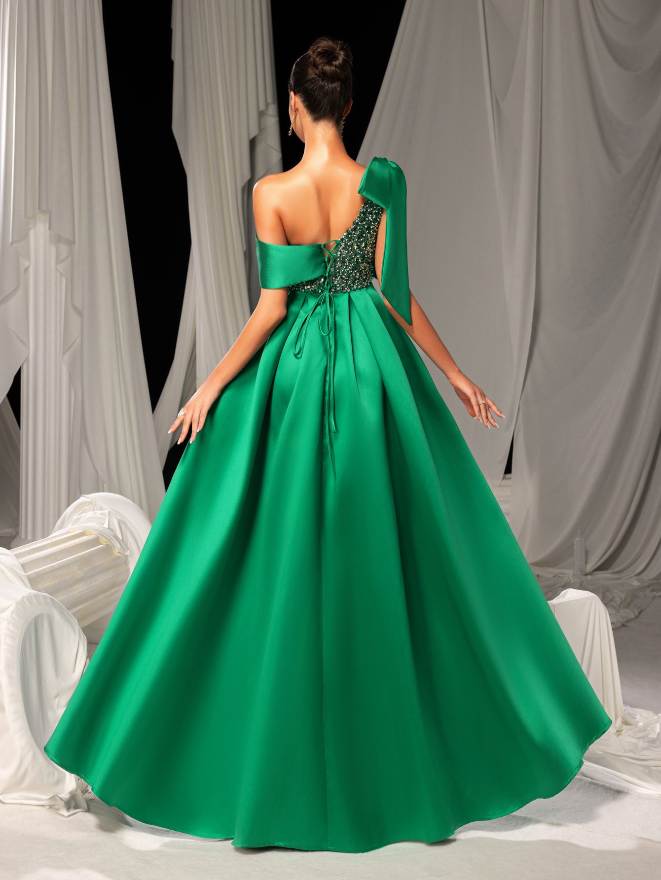 ✔️ Texture Play: Glossy satin contrasts with matte sequin details, creating depth under light.