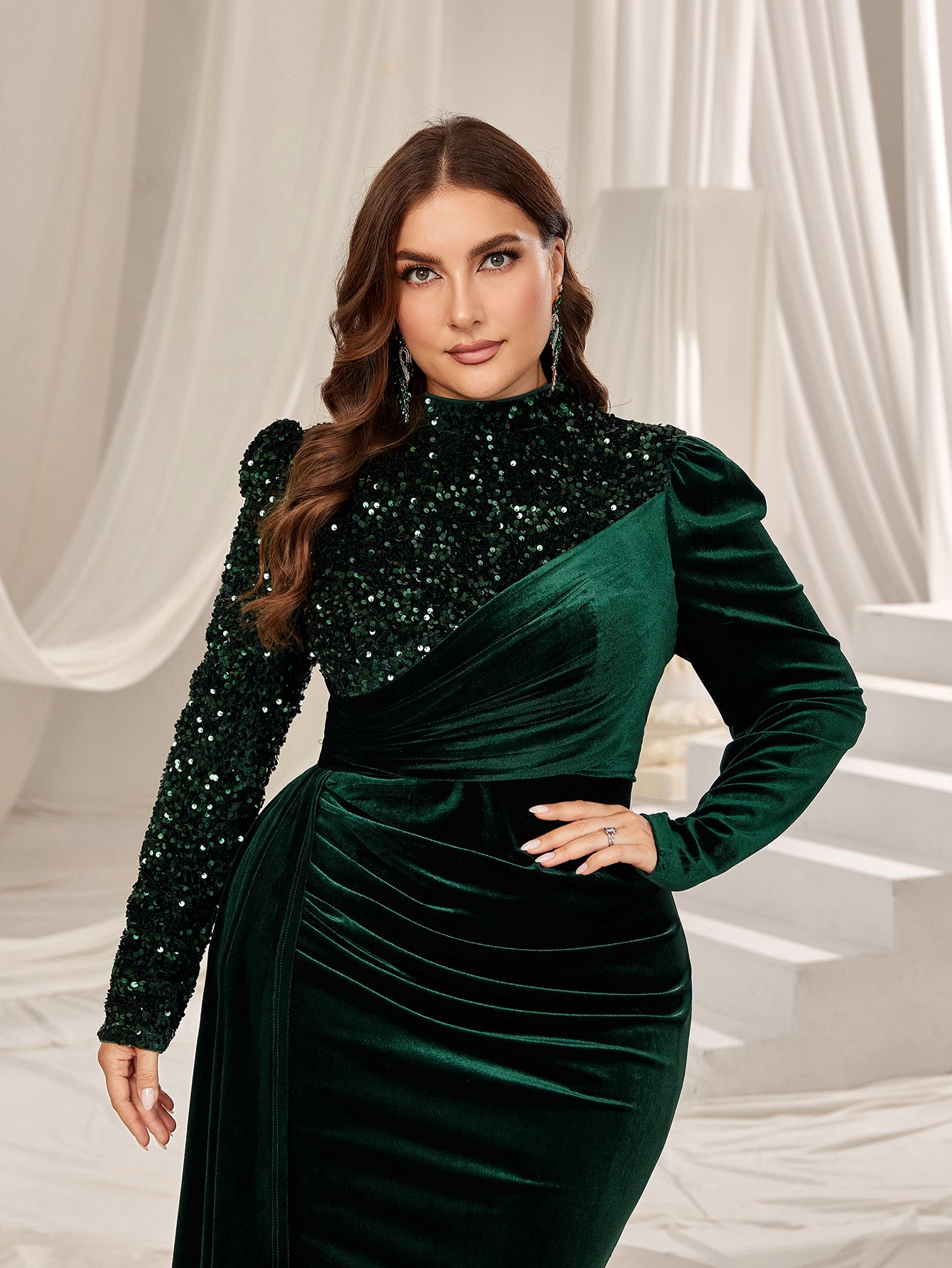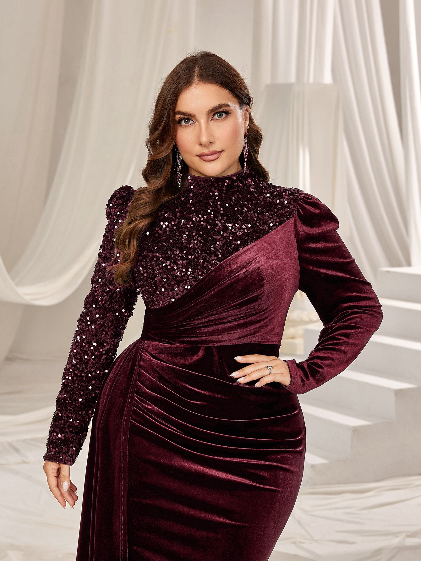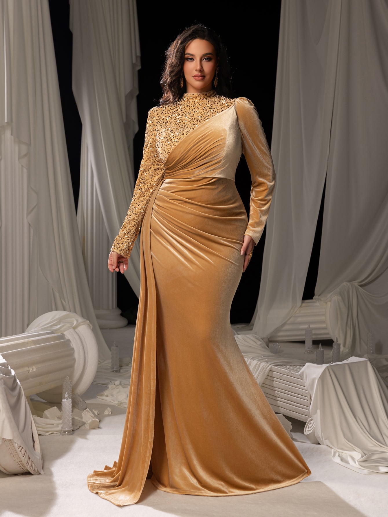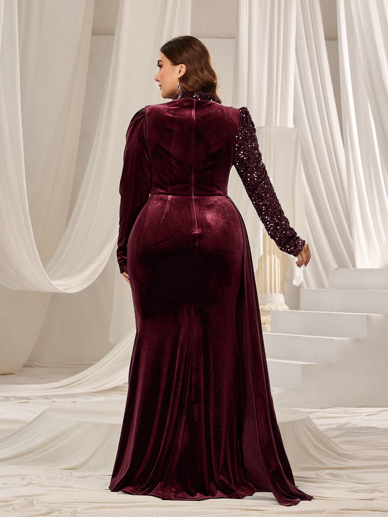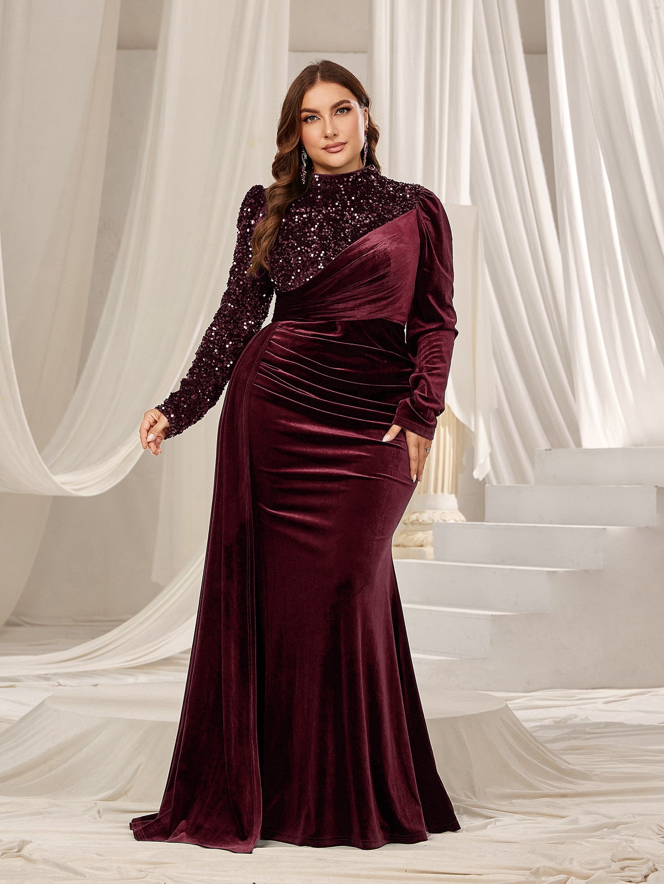 Plus Velvet Evening Gown with Sequin Detail & Mermaid Silhouette – Luxury Bridal Wear for Weddings or High-End Events, 1XL-5XL