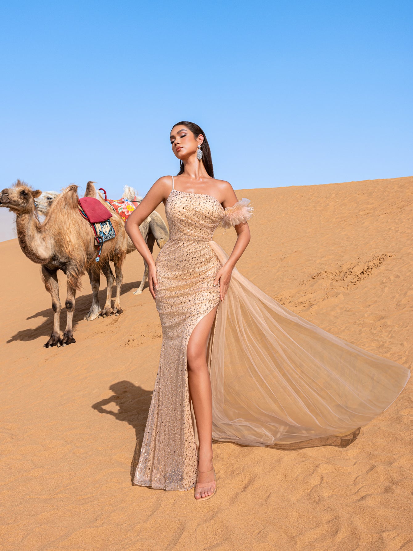 Design Highlights ✨ Dazzling Craftsmanship: This beaded sequin gown captivates with thousands of sequins and beads arranged...