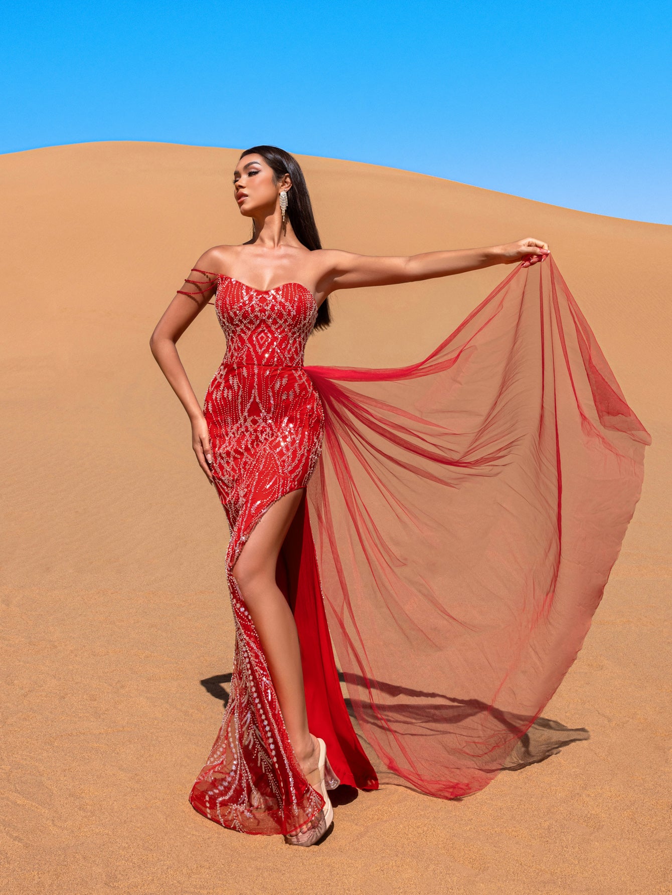 • Styling Tip: Pair with strappy gold heels and a metallic clutch for monochromatic drama, or contrast with emerald statement earrings for bold color-blocking.