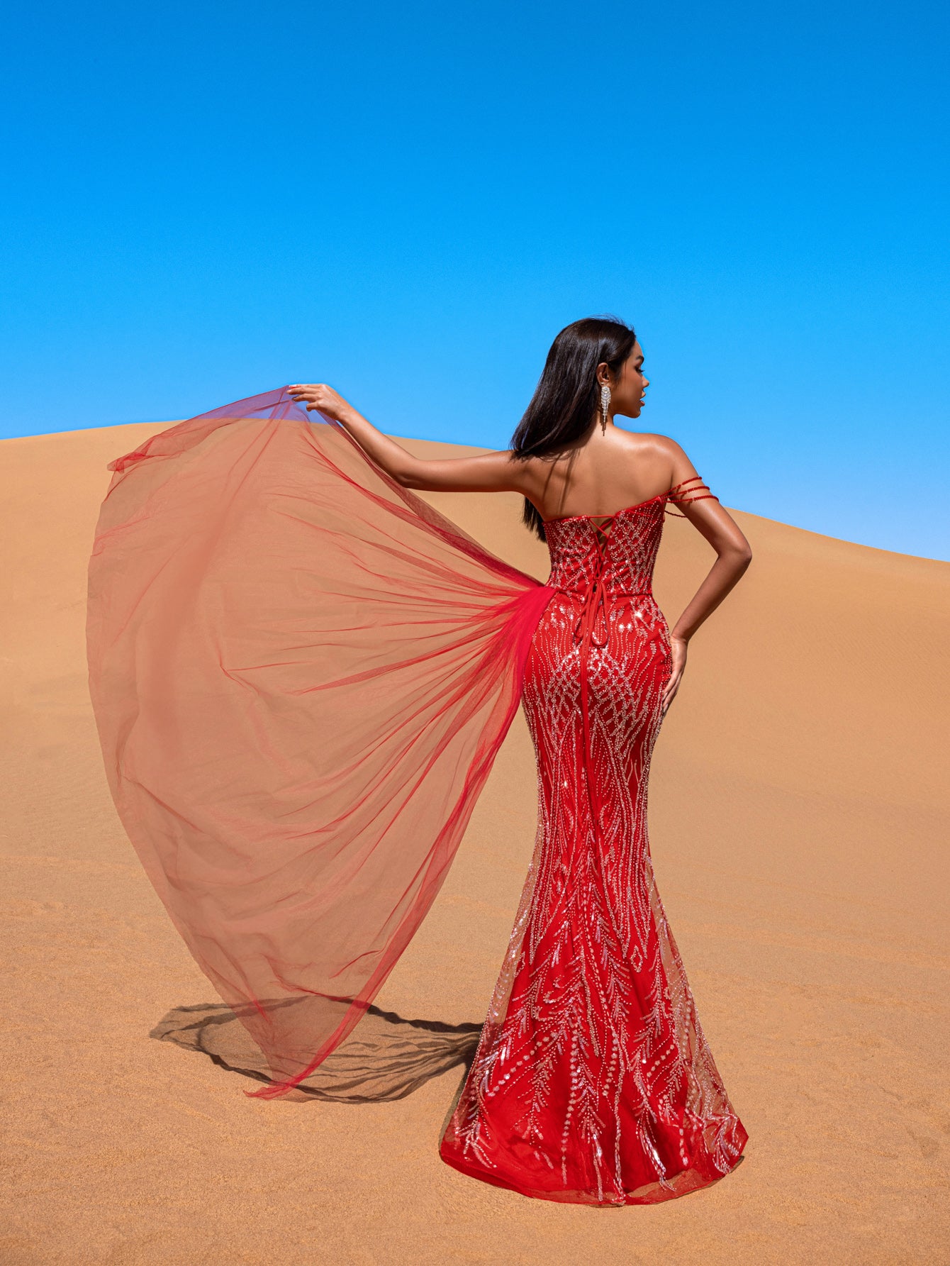 ✔️ Light Dynamics: Sequins create a sparkle effect, while the scarlet base fabric intensifies their fiery glow.
