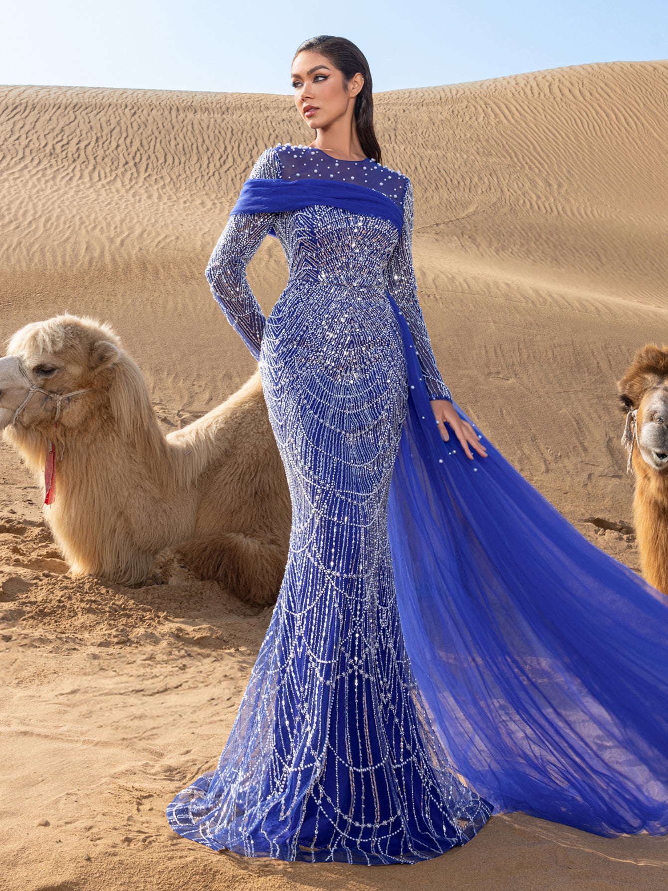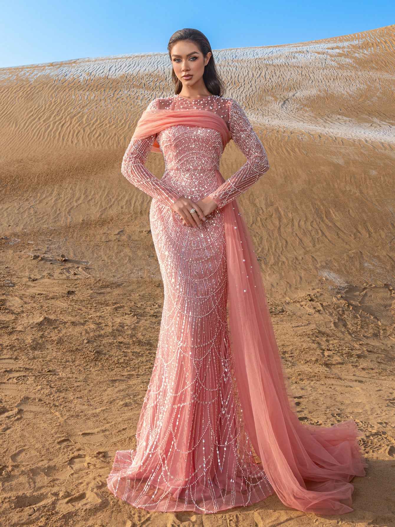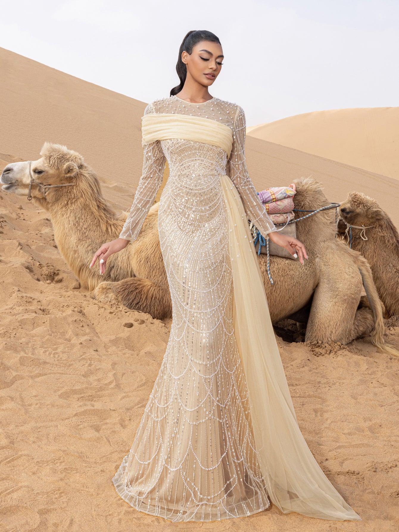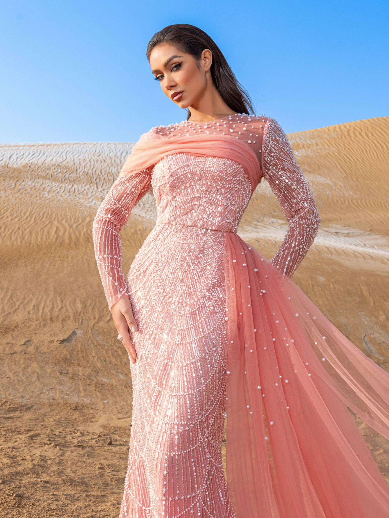 Capture attention and leave an impression in this exquisite gown, crafted for those who appreciate the finer details of glamour and luxury.