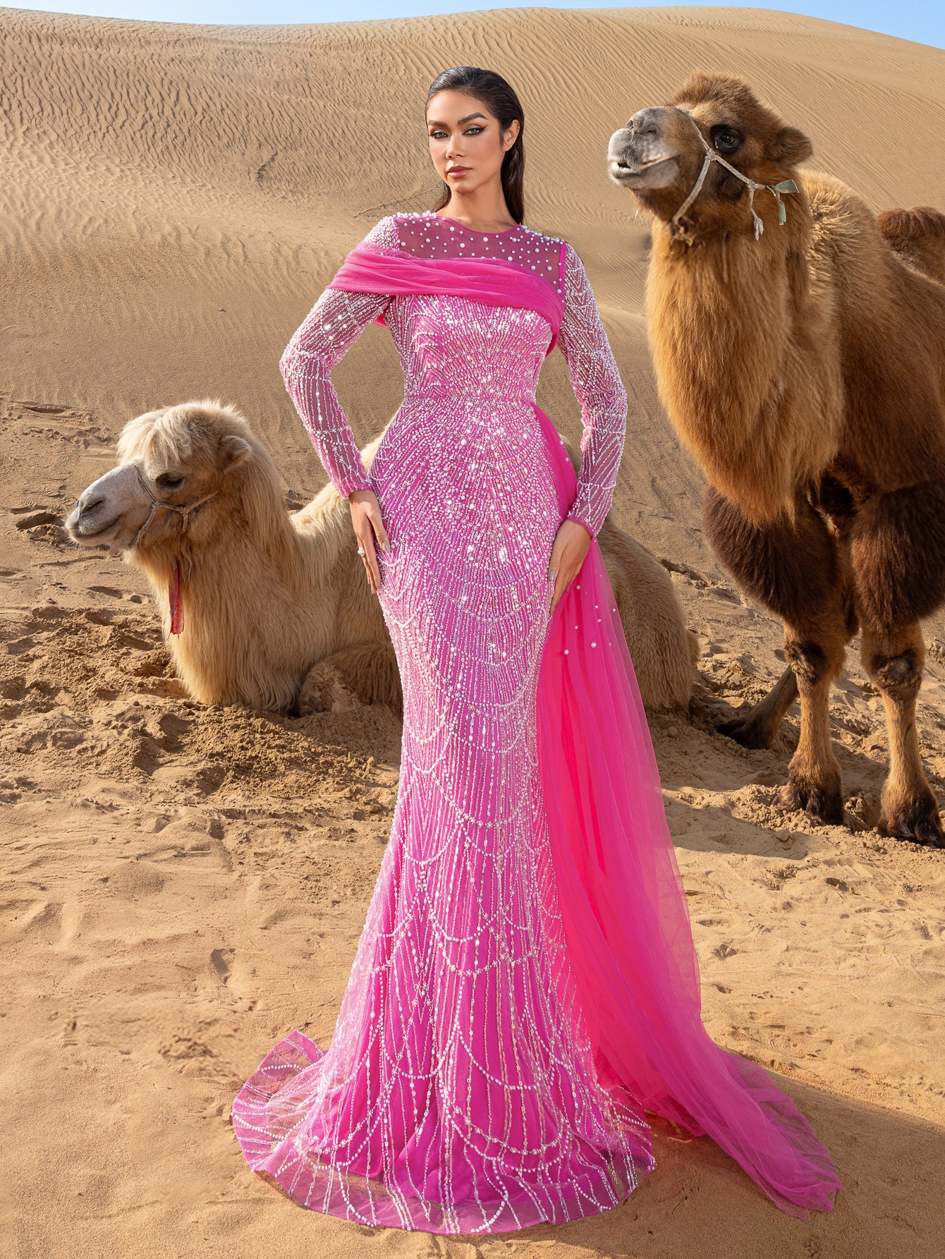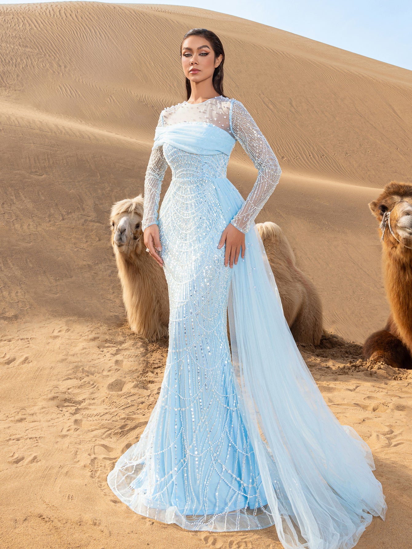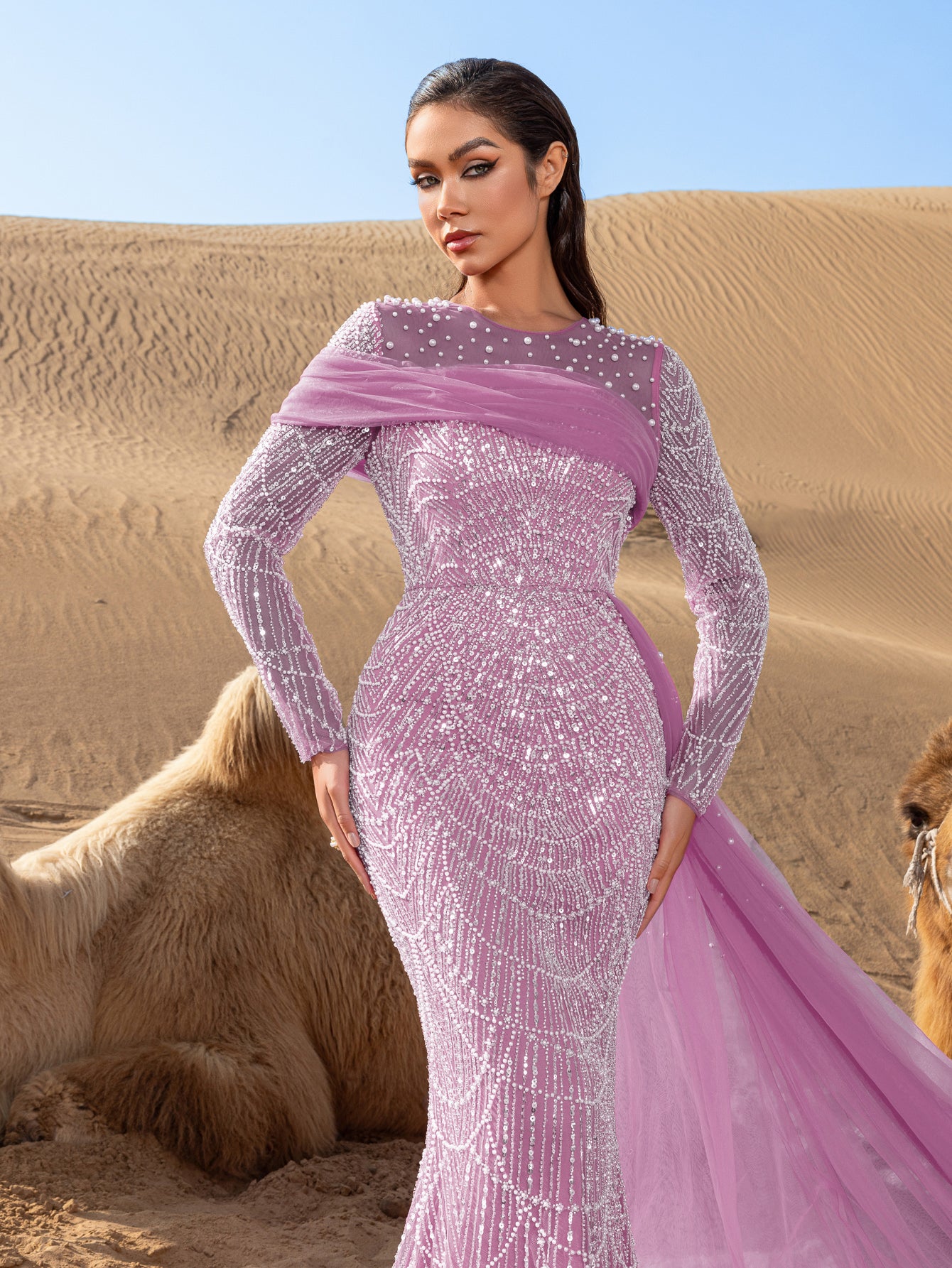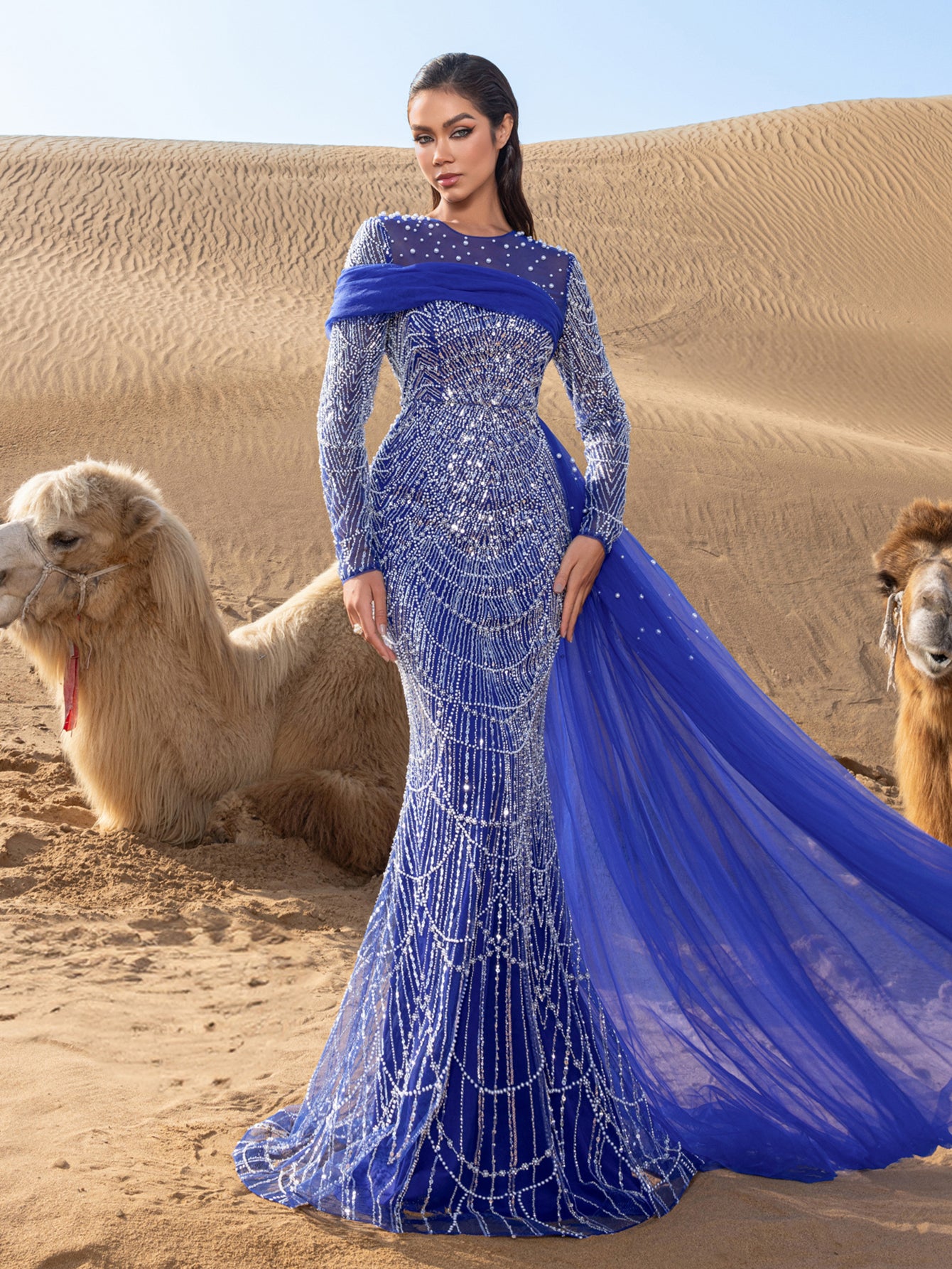 Capture attention and leave an impression in this exquisite gown, crafted for those who appreciate the finer details of glamour and luxury.