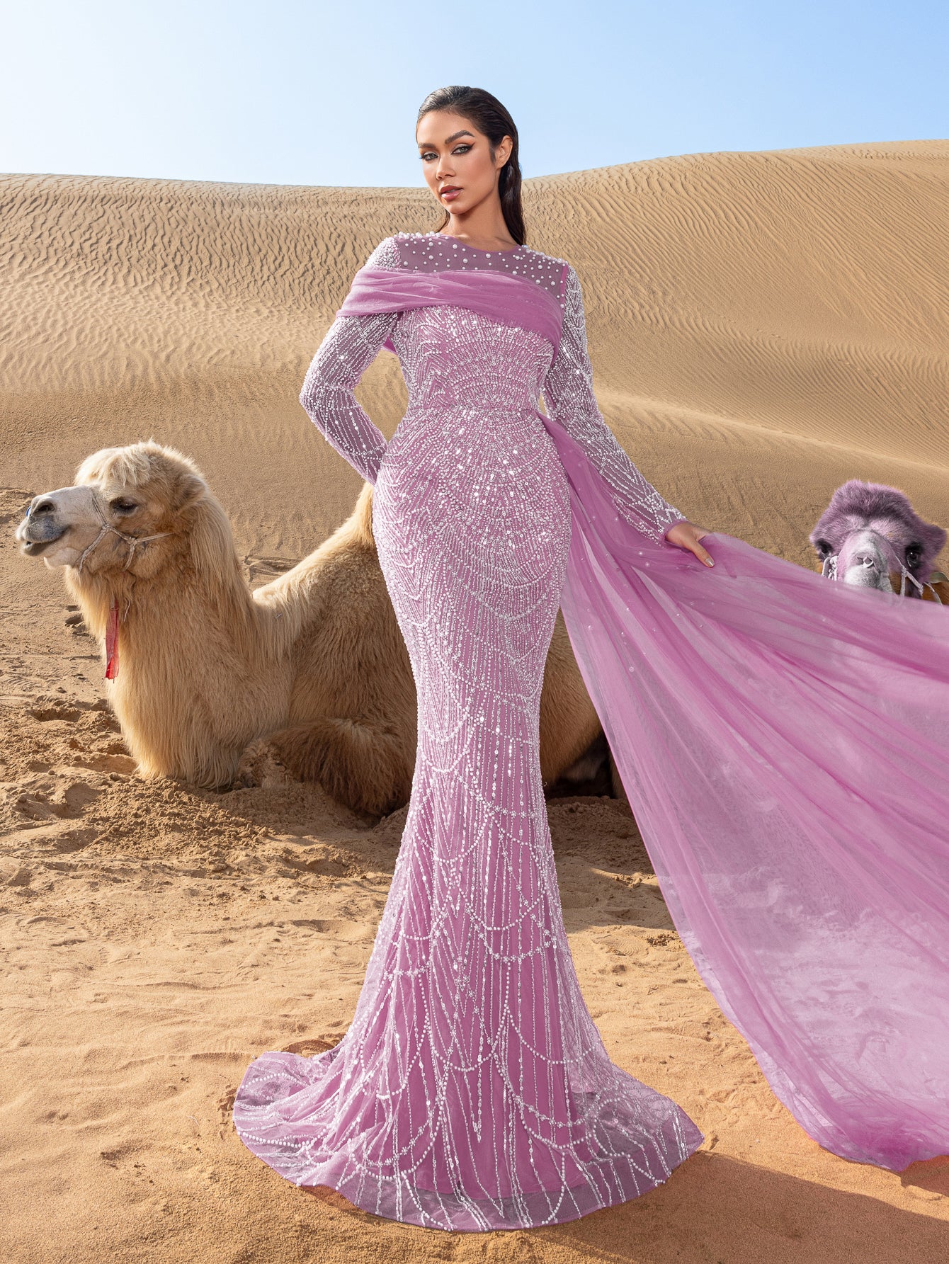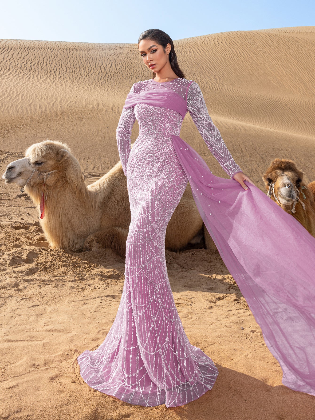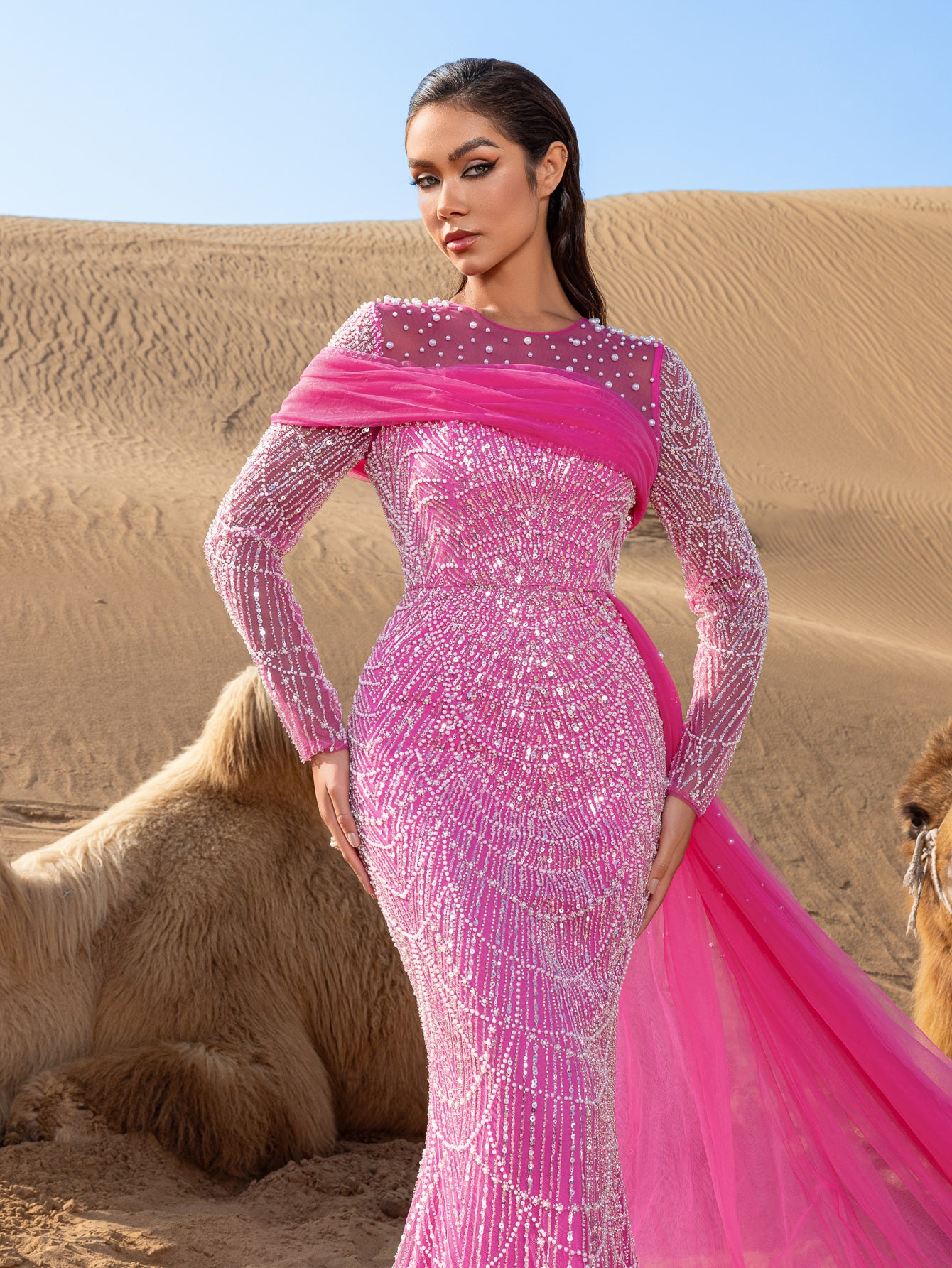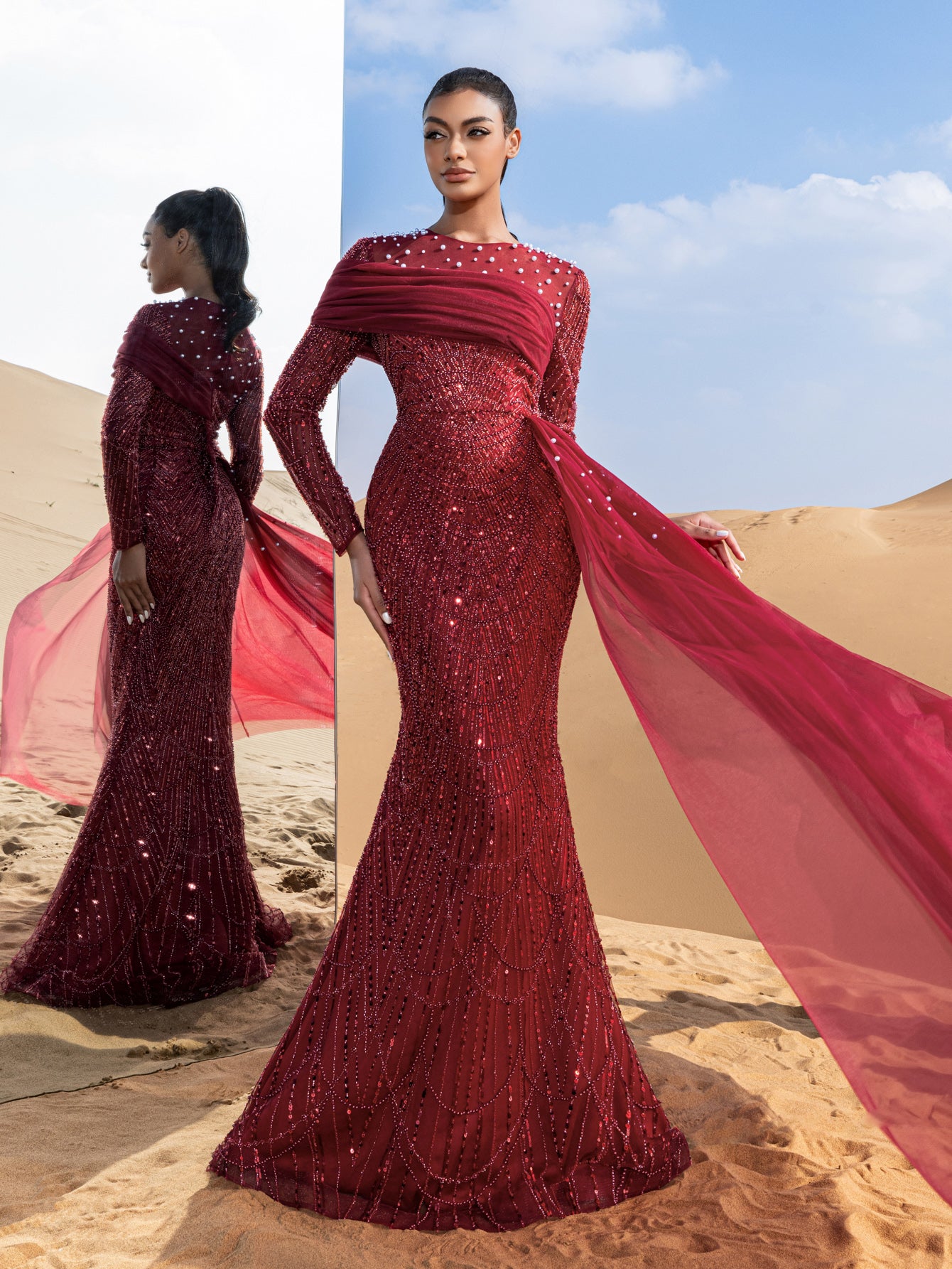 Capture attention and leave an impression in this exquisite gown, crafted for those who appreciate the finer details of glamour and luxury.