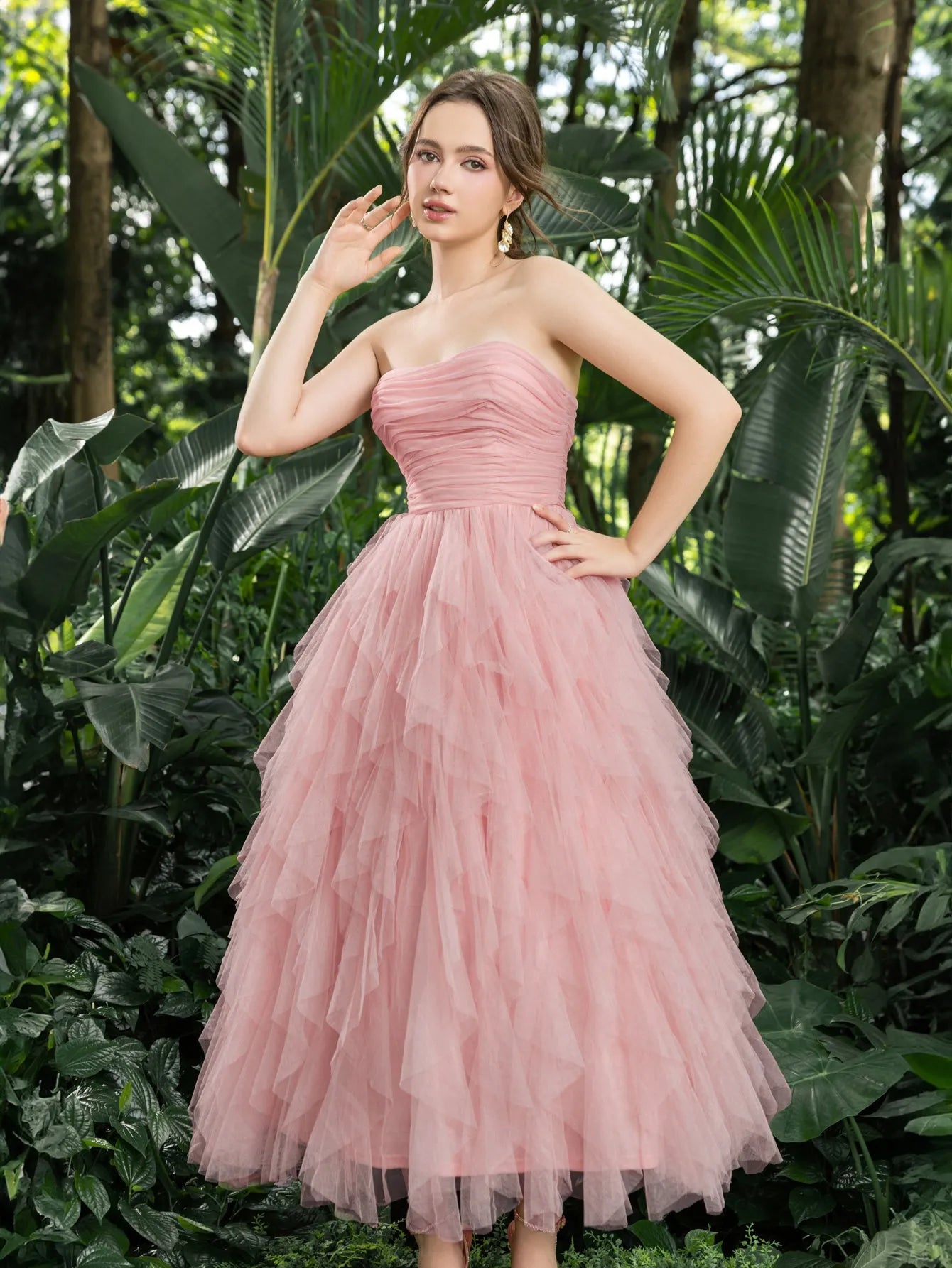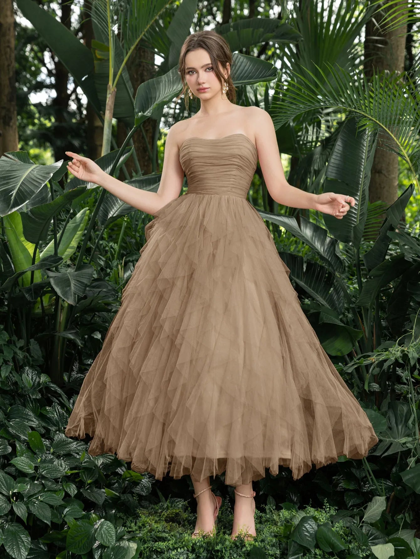 Step into a world of romantic elegance with our tulle gown, designed to enchant at every occasion. This strapless gown features a ruched bodice that creates a flattering, fitted silhouette, while the voluminous tiered tulle skirt flows gracefully for a fairytale-like effect. The lace-up back adds a touch of modern charm, ensuring the perfect fit.