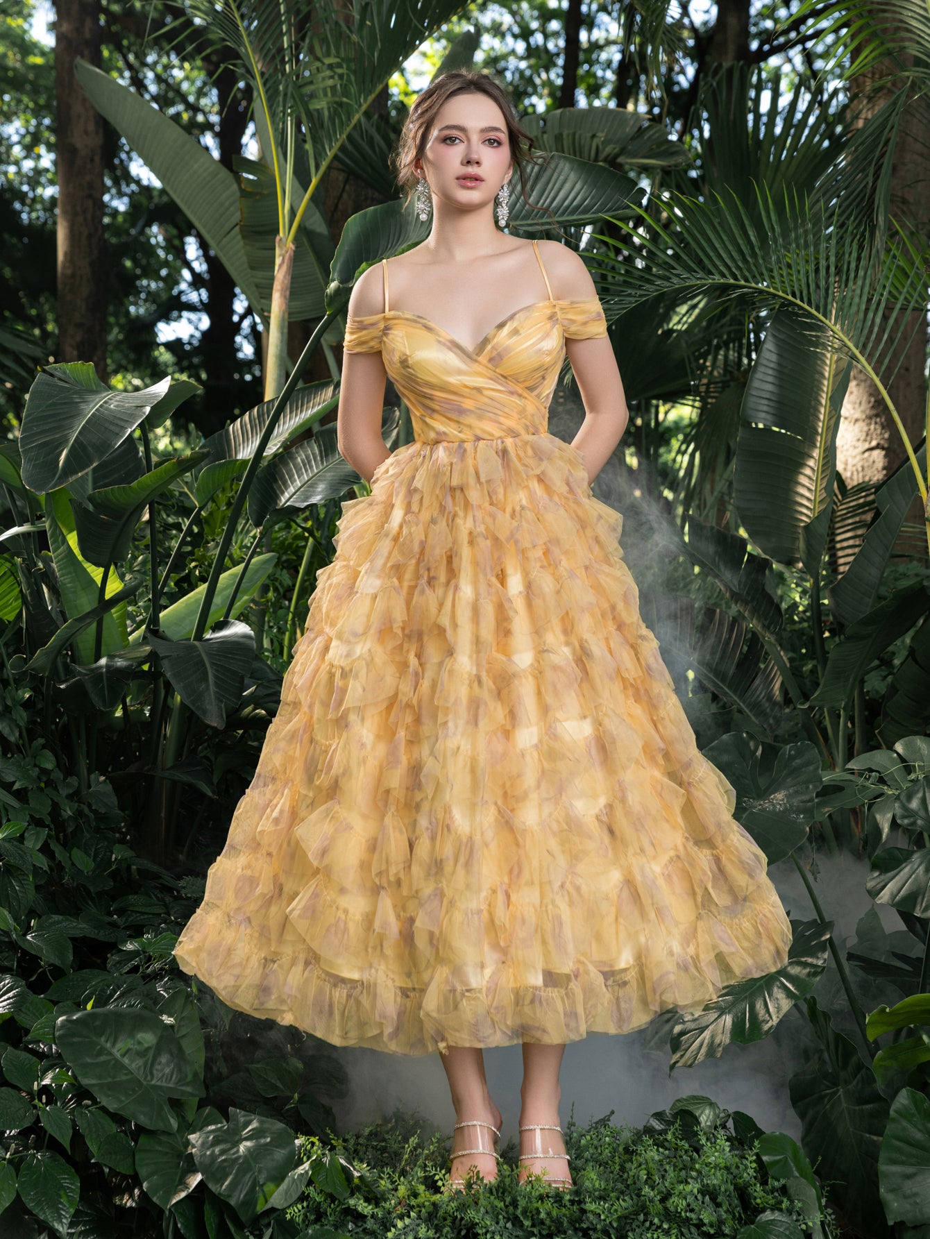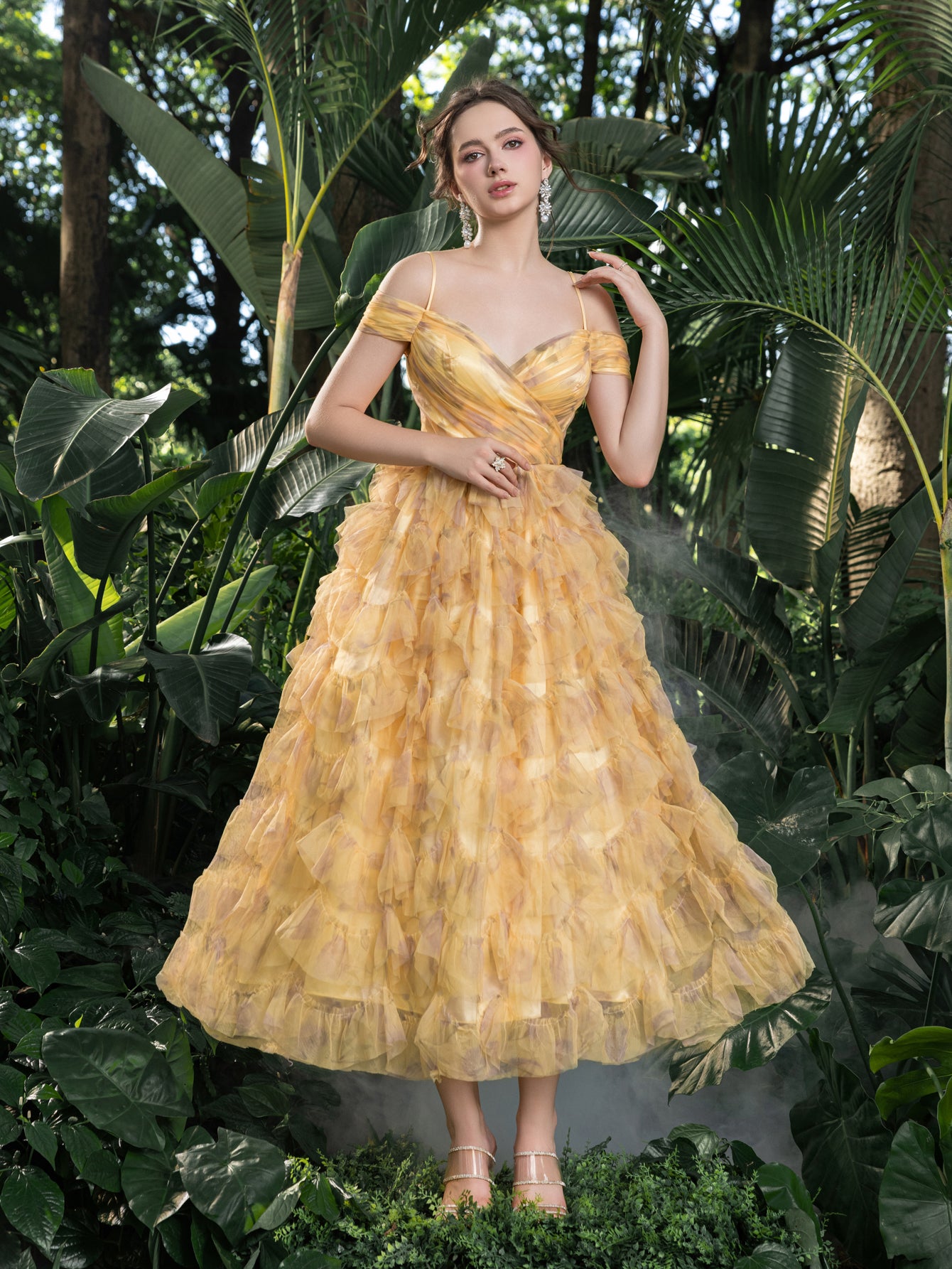 ✨ Nature-Infused Contrast: The bold yellow hue pops against lush greenery, making it ideal for tropical-themed celebrations or garden soirées where the dress becomes a living work of art.