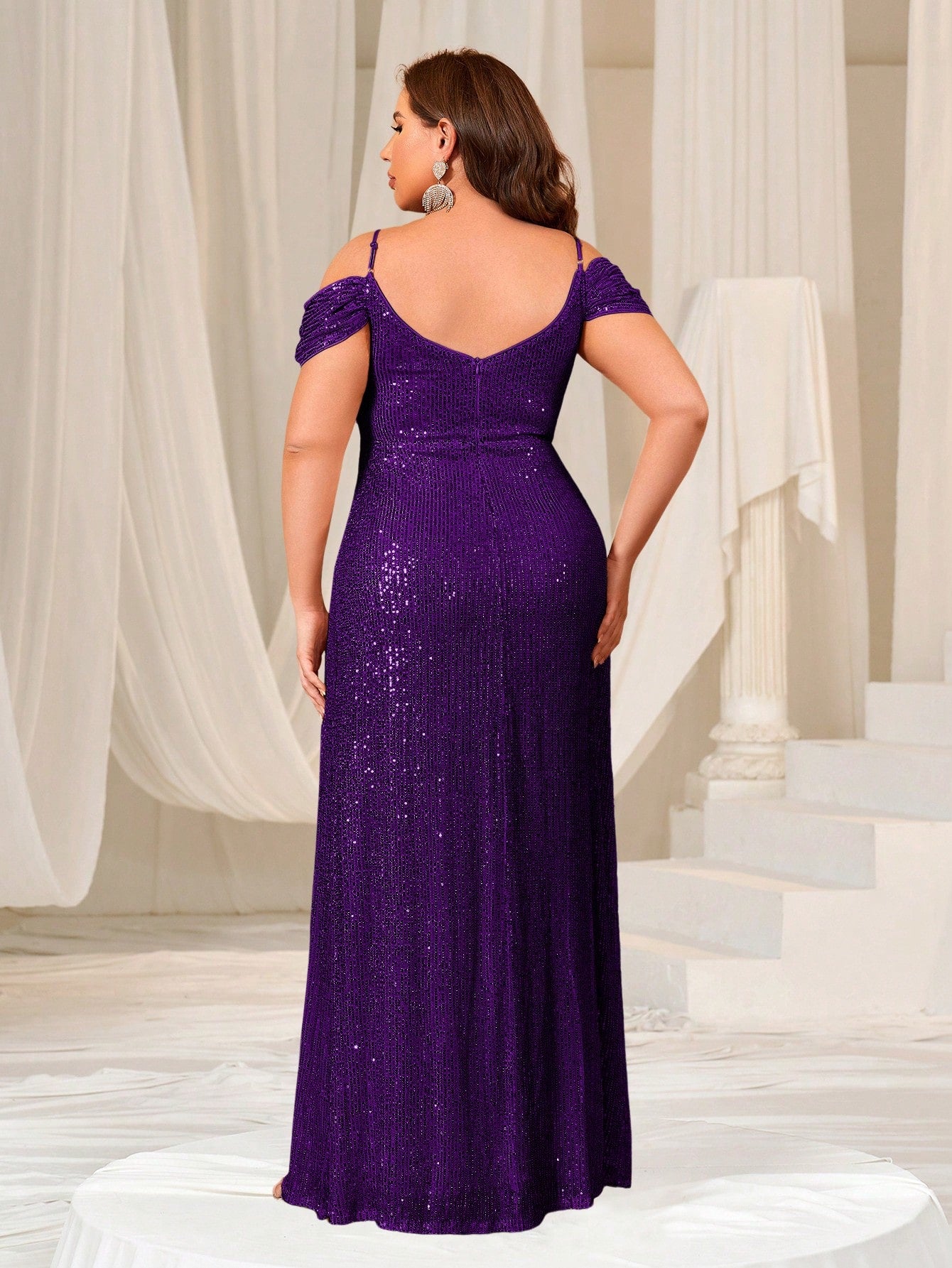 Be the epitome of grace and style in this mesmerizing cold shoulder sequin gown!