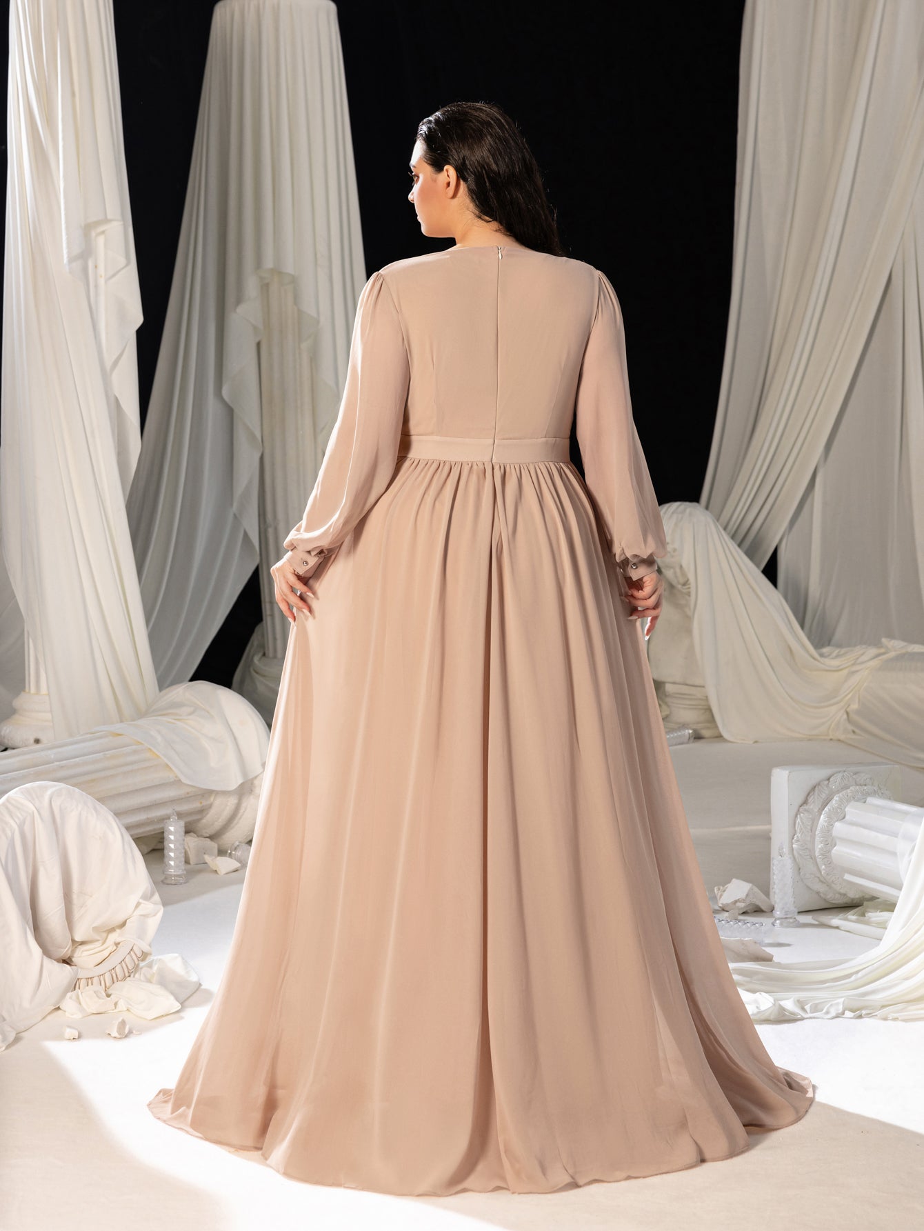 Step into elegance with this exquisite chiffon evening gown, designed to make you the center of attention at any event.