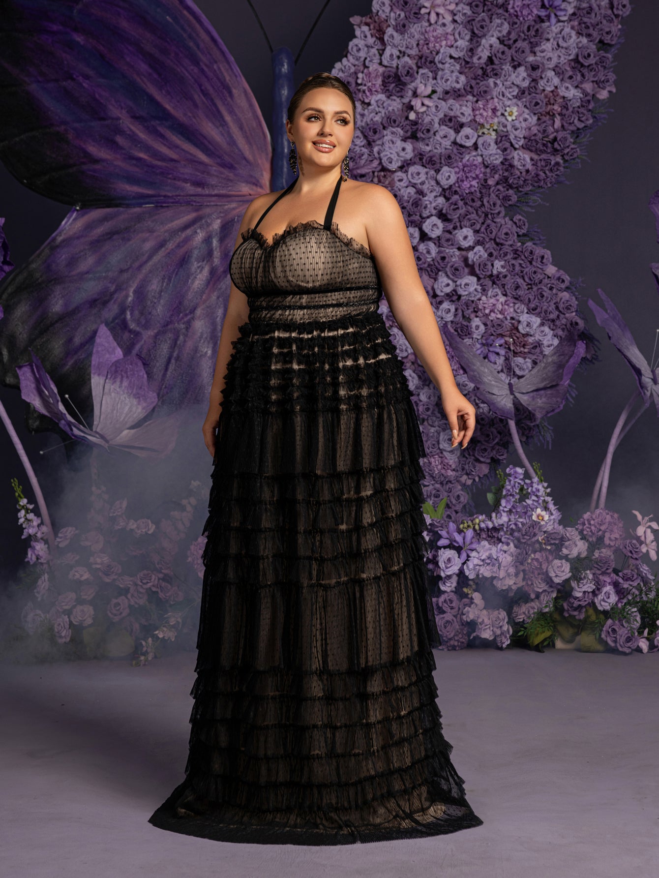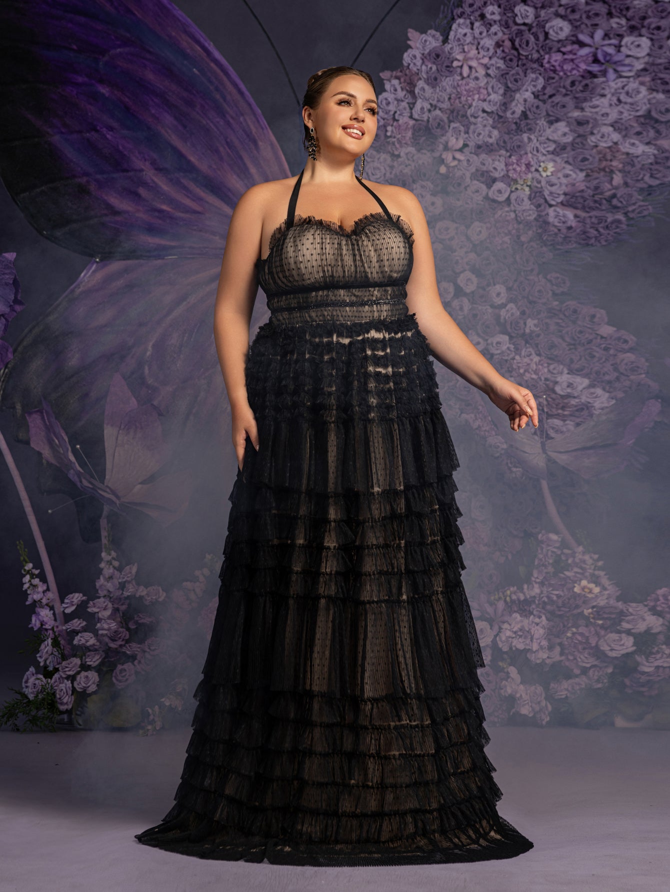 Elevate your evening look with our stunning black tulle gown, perfect for any formal occasion. The gown features a sweetheart neckline and a fitted bodice, accentuating your curves with intricate lace detailing. The tiered tulle skirt cascades into a dramatic flow, creating a regal and sophisticated silhouette.