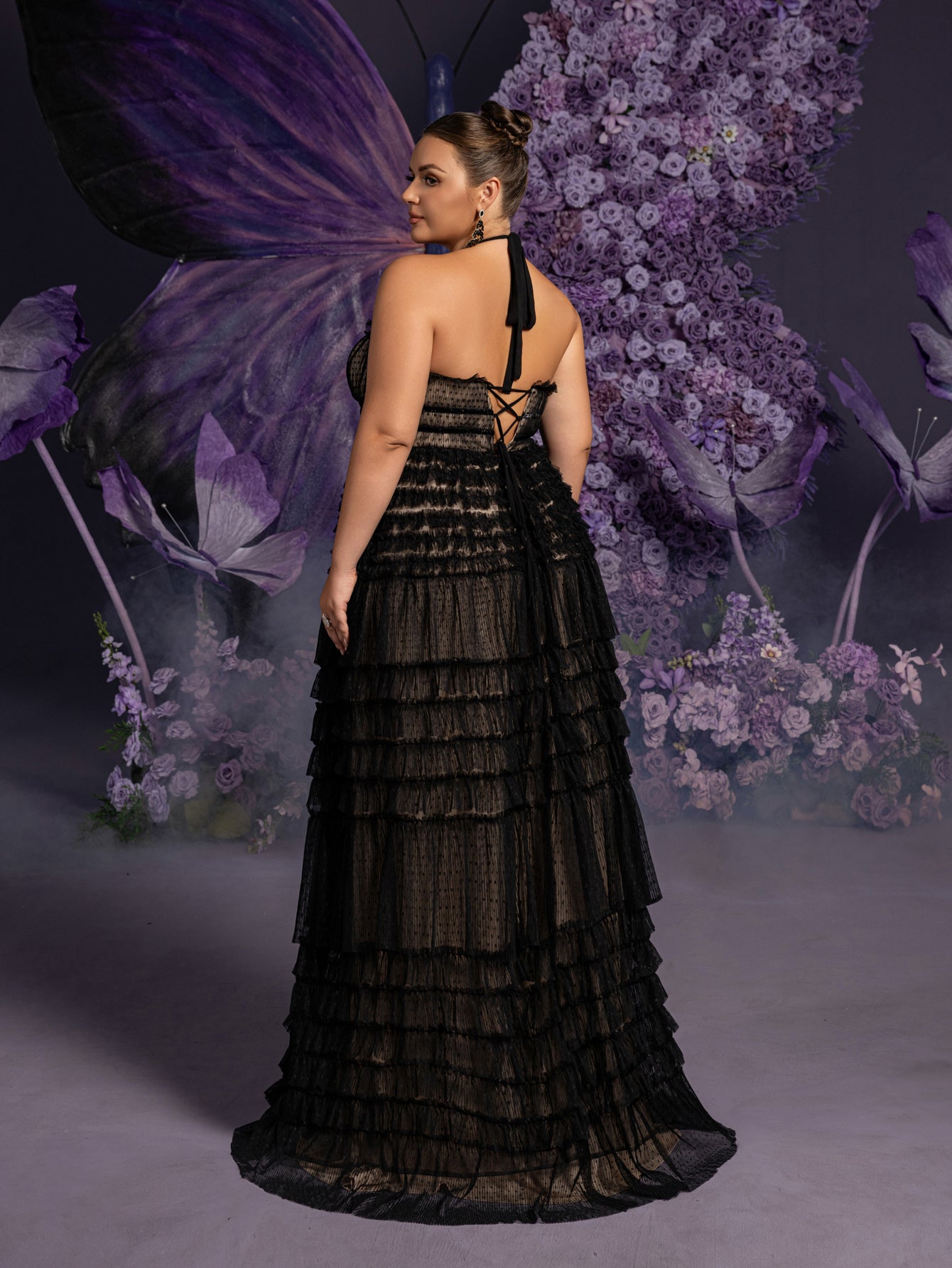 Elevate your evening look with our stunning black tulle gown, perfect for any formal occasion. The gown...