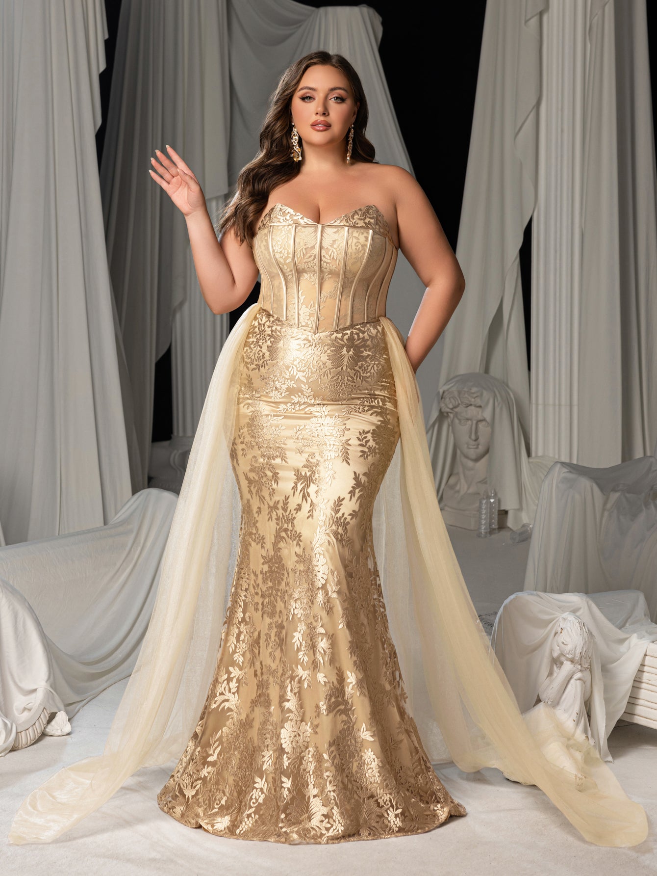 Design Highlights ✨ Timeless Elegance: This embroidered mermaid gown features a strapless sweetheart neckline and a fitted...