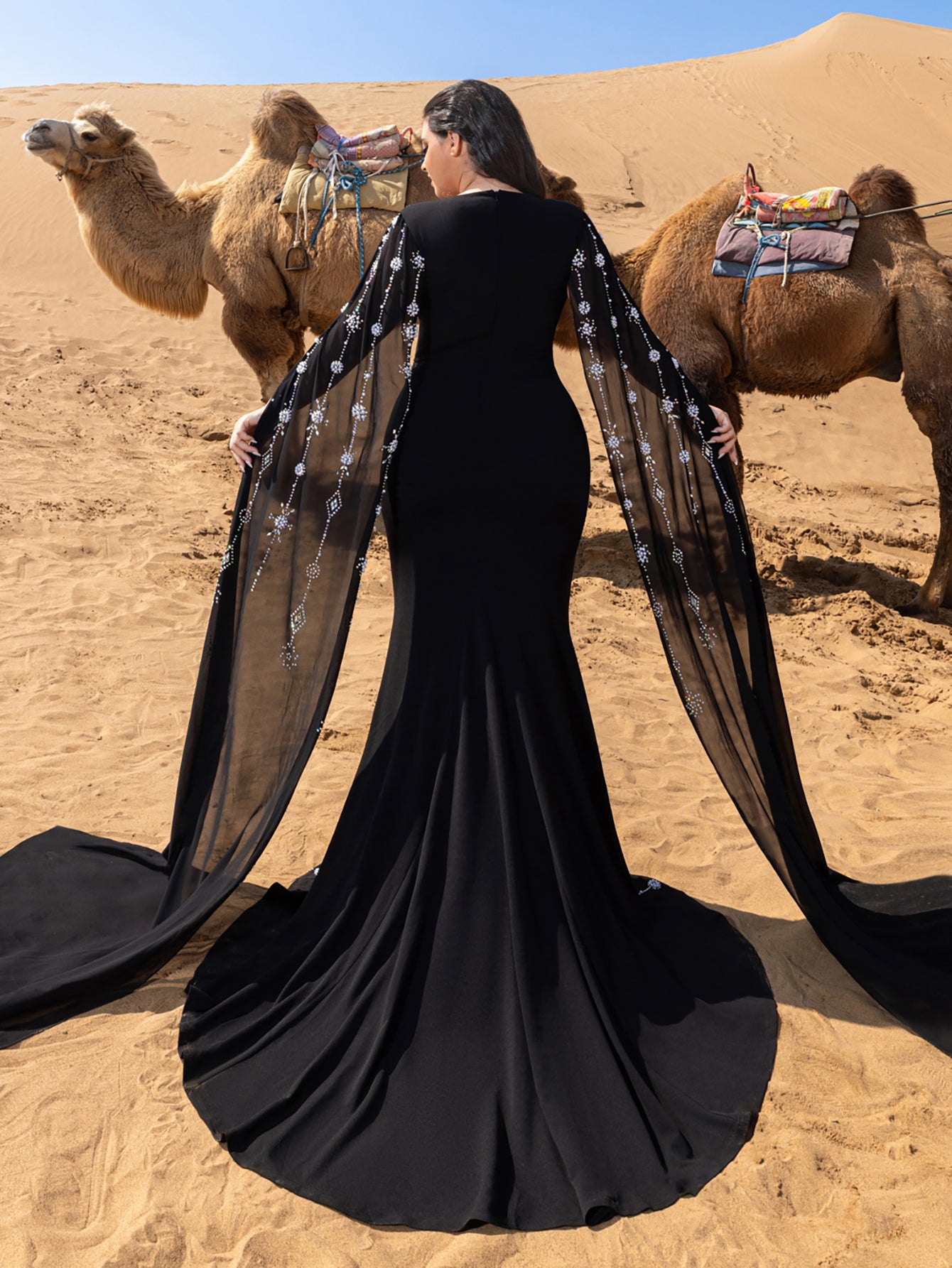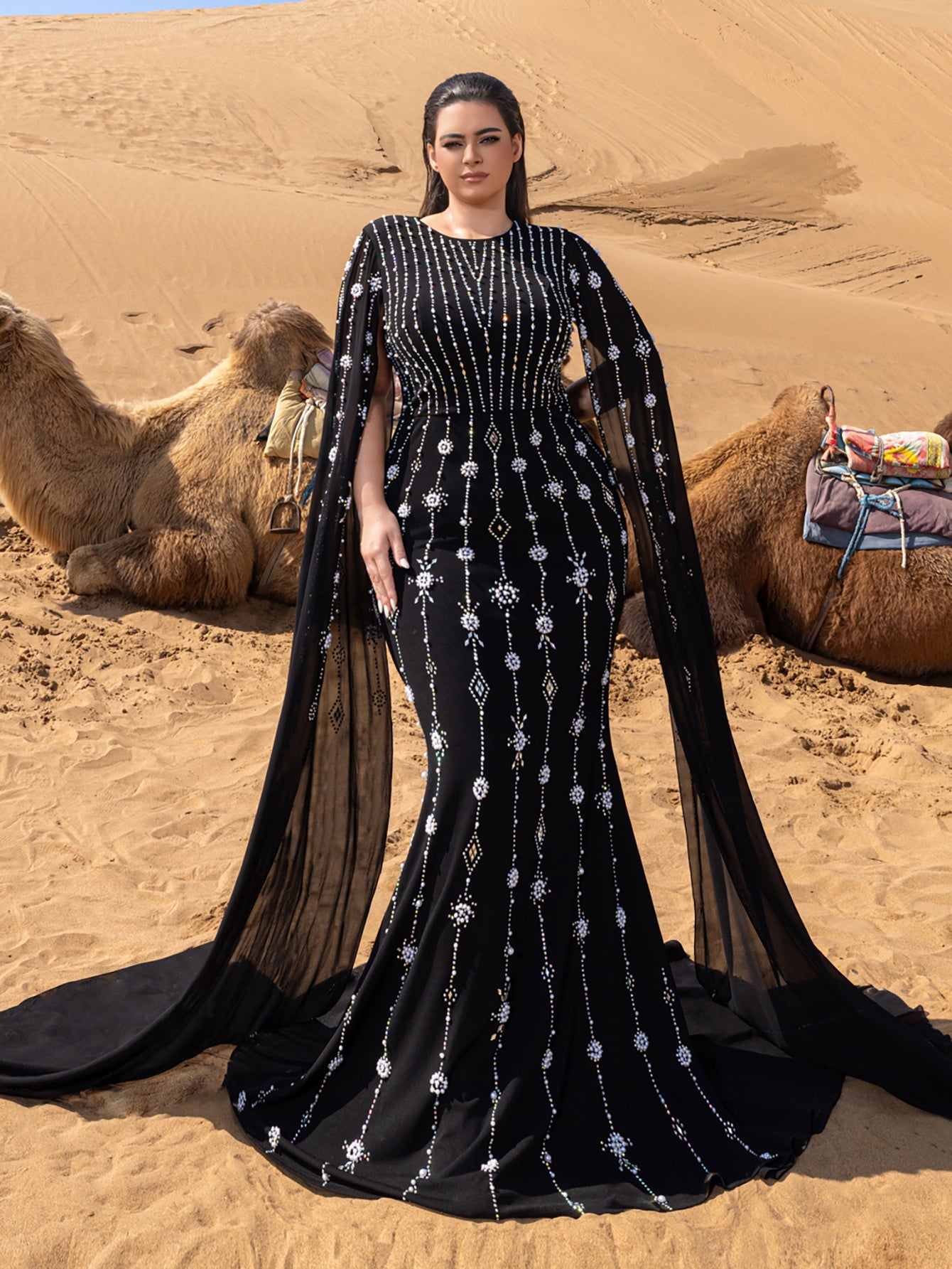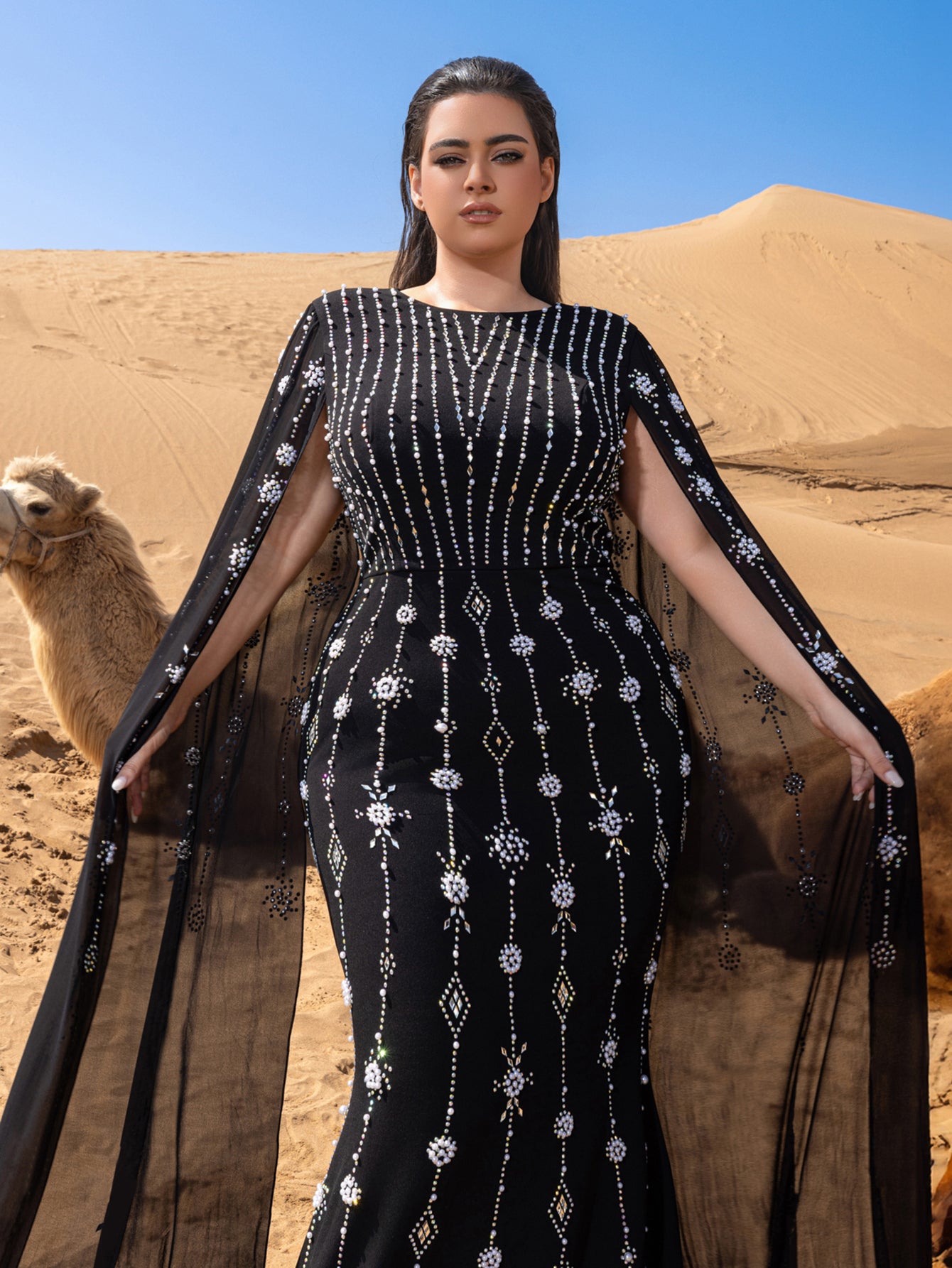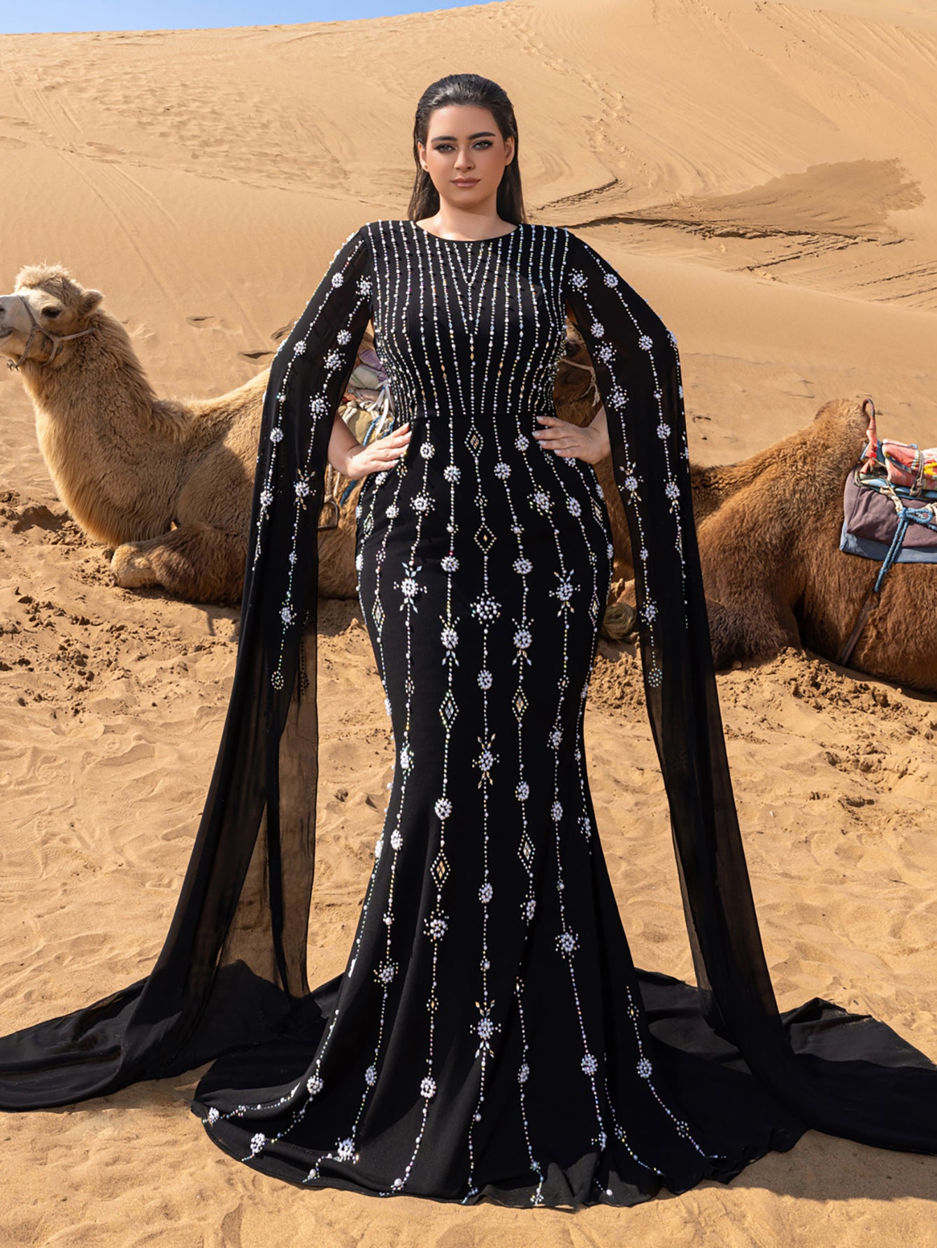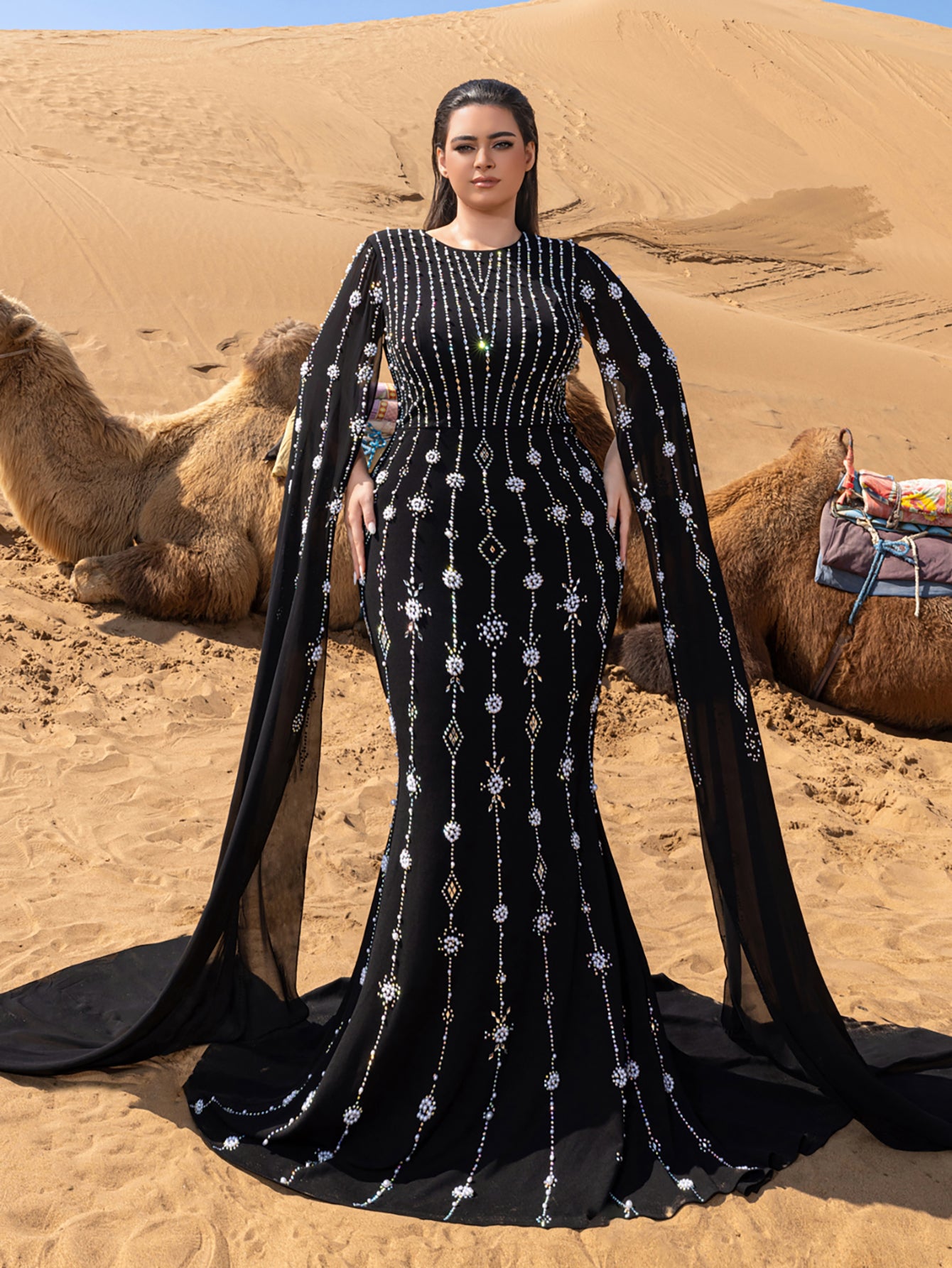 • Styling Tip: Pair with chrome-finish stilettos and onyx drop earrings for monochromatic drama, or add a faux fur stole for Old Hollywood-inspired red carpet moments.