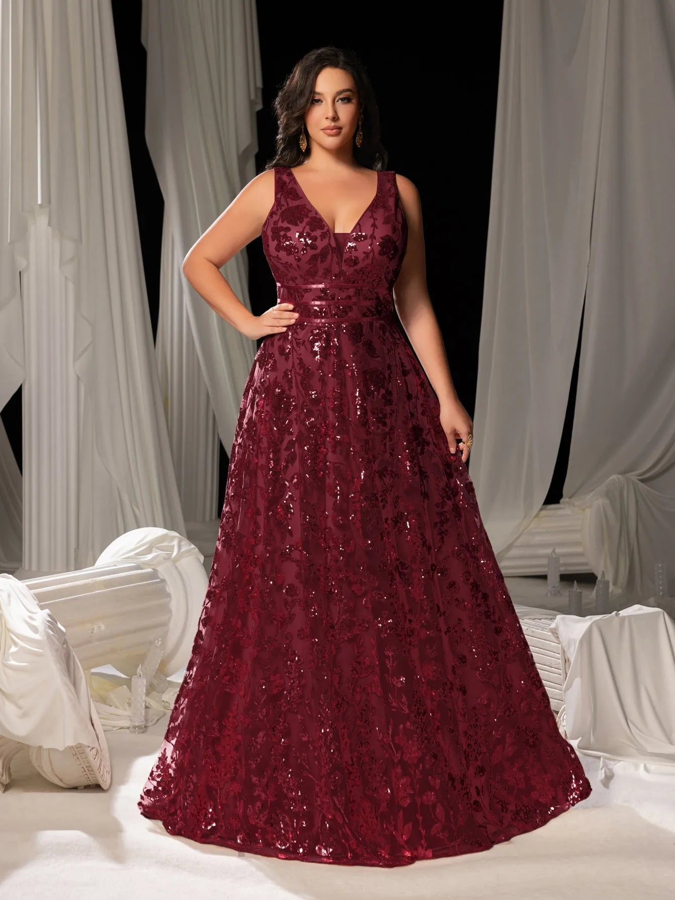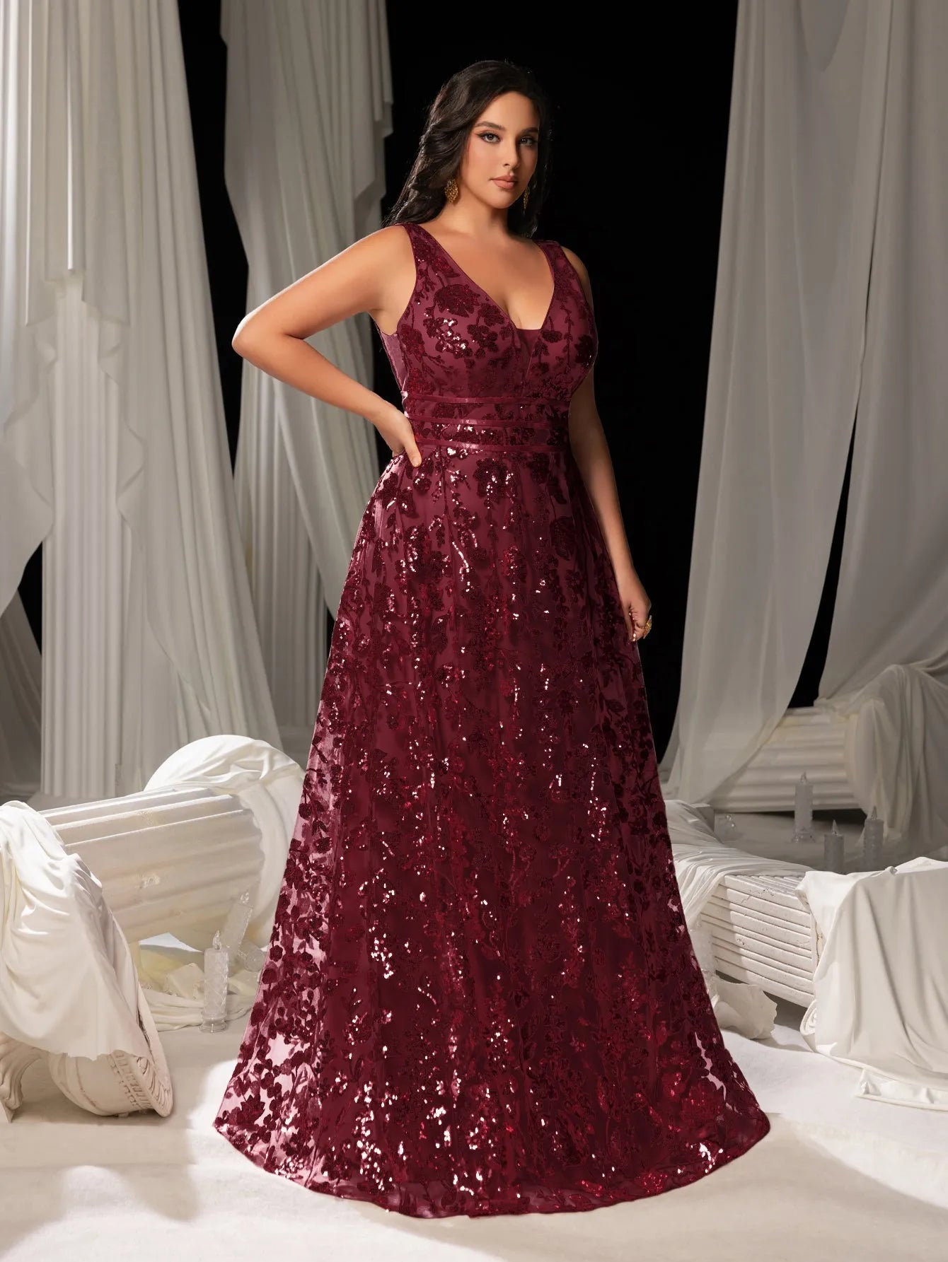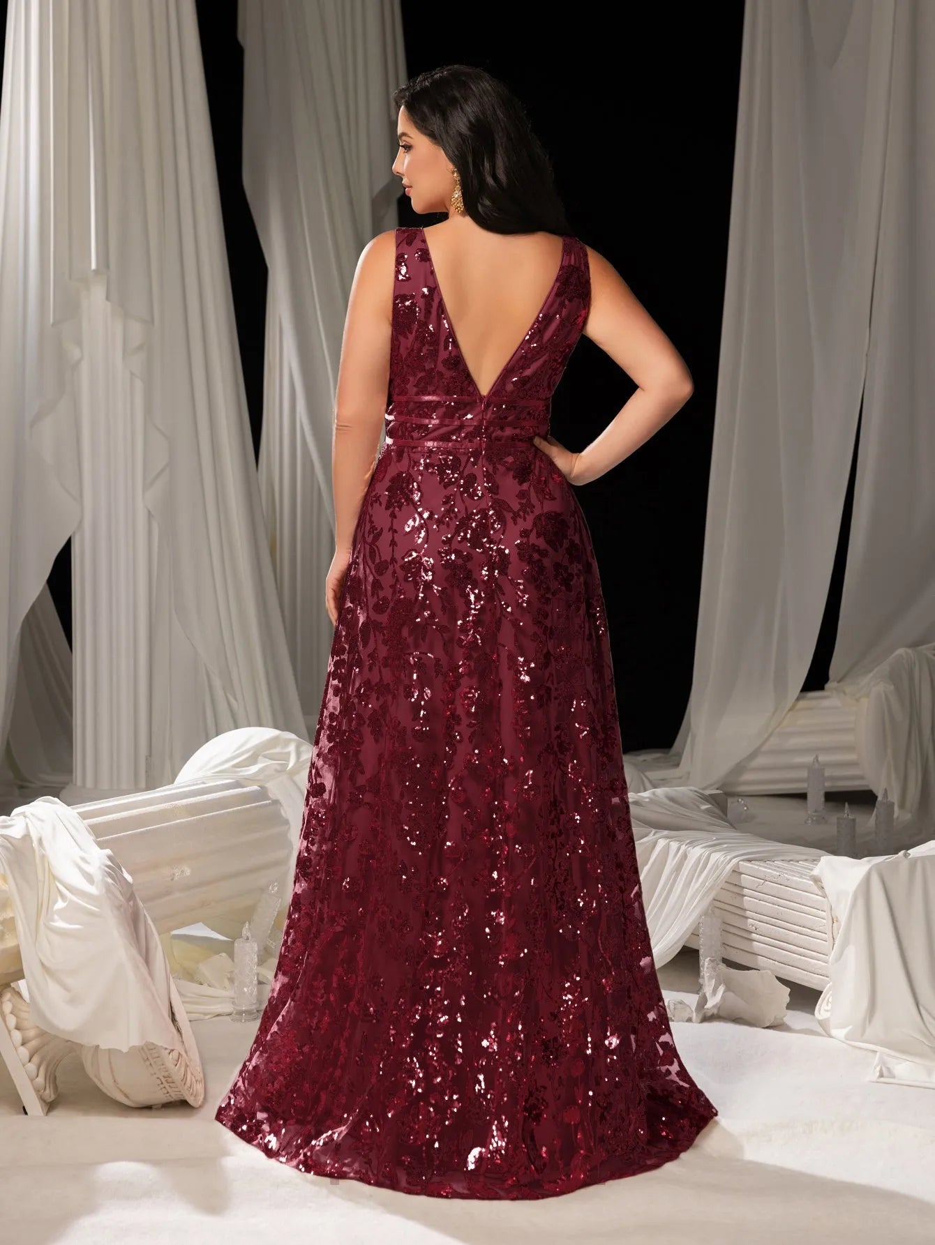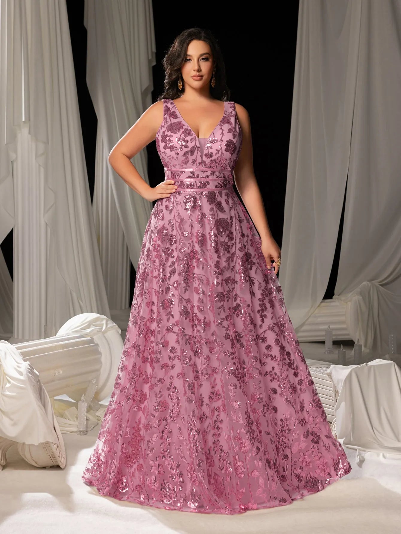 Command attention in this stunning floral sequin gown, a perfect combination of elegance and sophistication. Featuring a deep V-neckline and wide straps, this gown is beautifully adorned with floral sequin detailing that catches the light with every movement. The floor-length A-line skirt offers a classic silhouette, while the deep V-back adds a modern and sultry touch.