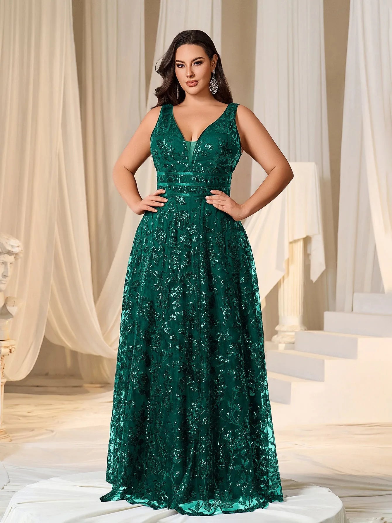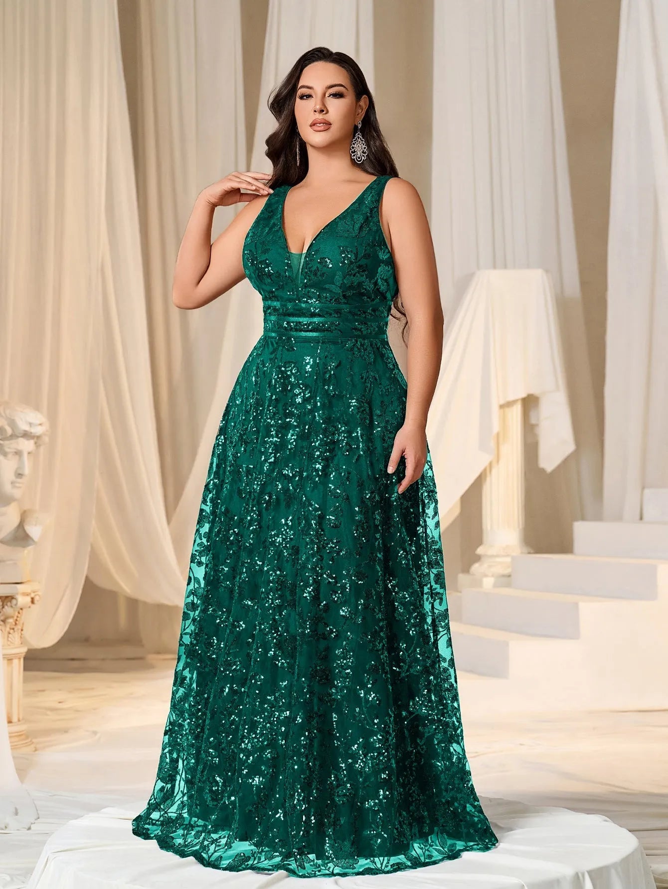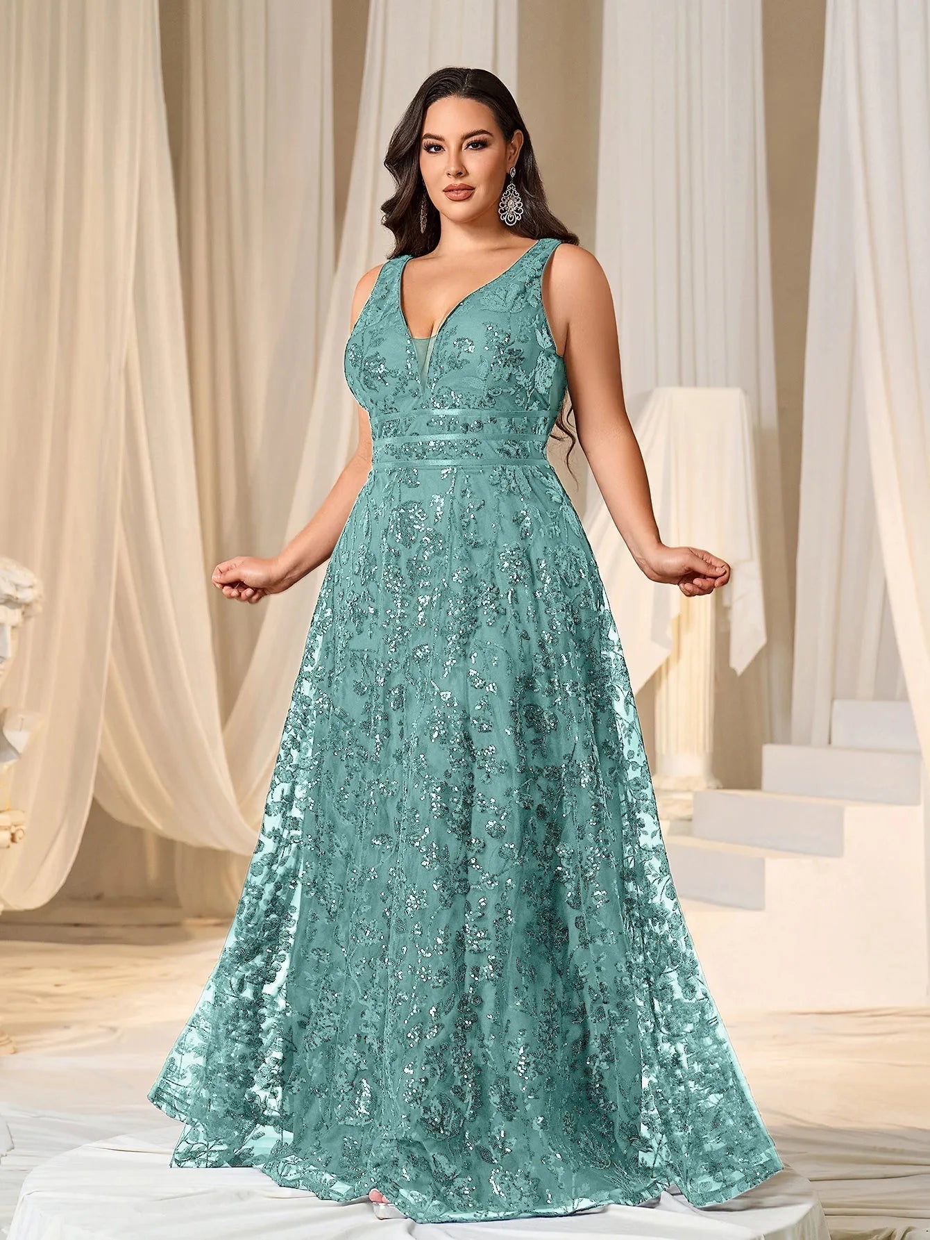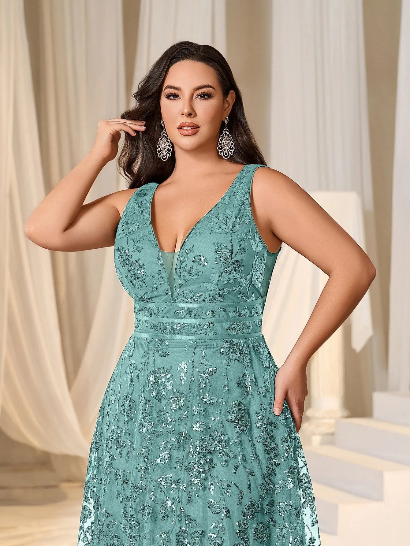 Command attention in this stunning floral sequin gown, a perfect combination of elegance and sophistication. Featuring a deep V-neckline and wide straps, this gown is beautifully adorned with floral sequin detailing that catches the light with every movement. The floor-length A-line skirt offers a classic silhouette, while the deep V-back adds a modern and sultry touch.