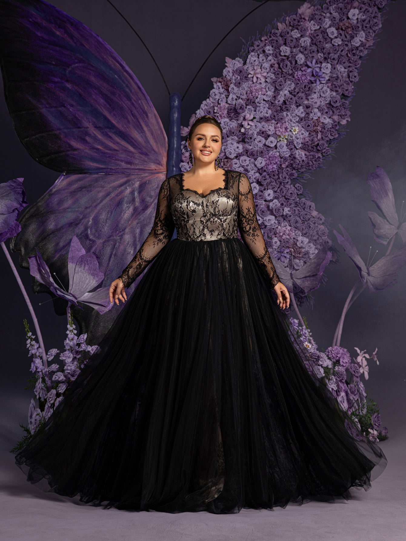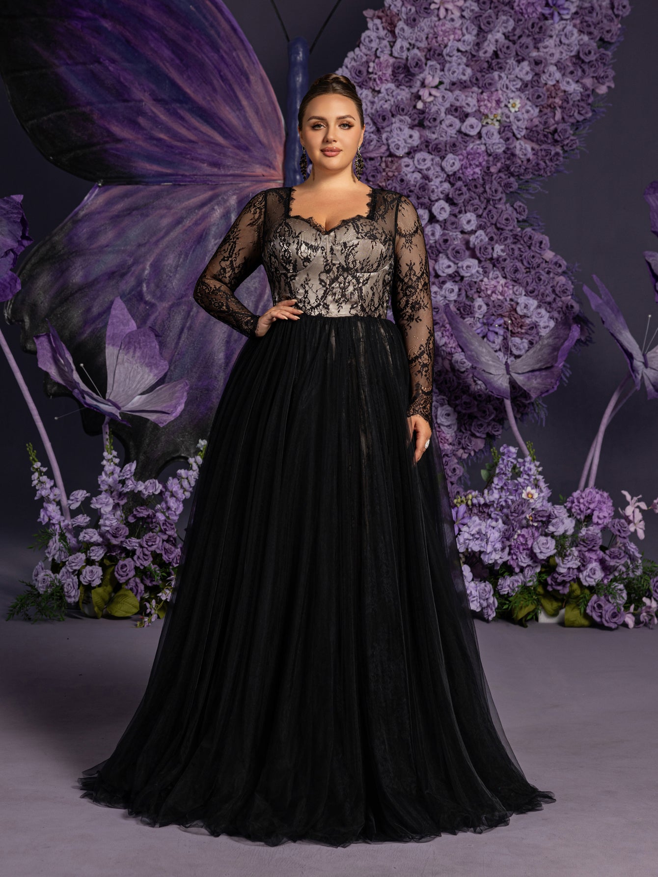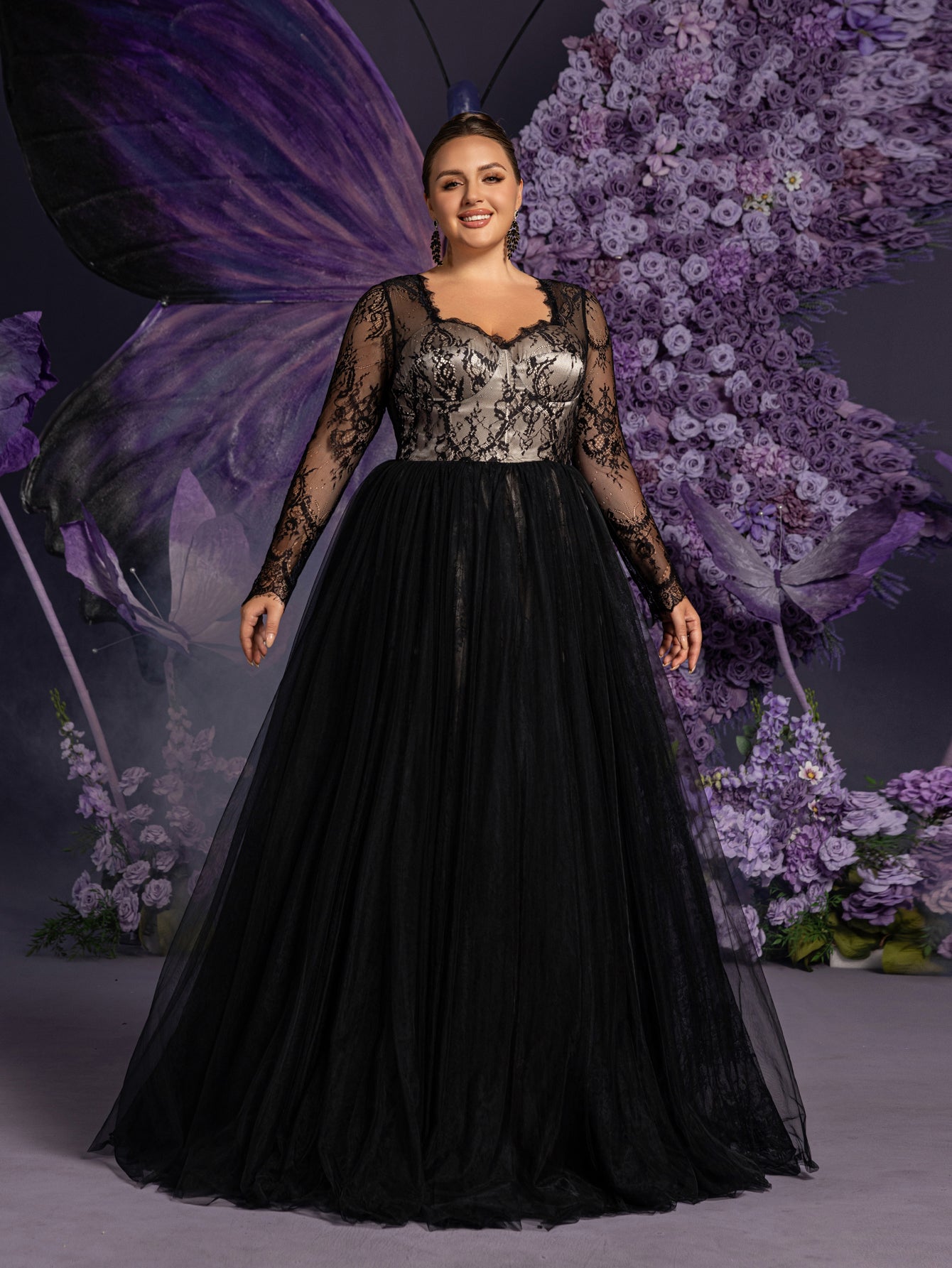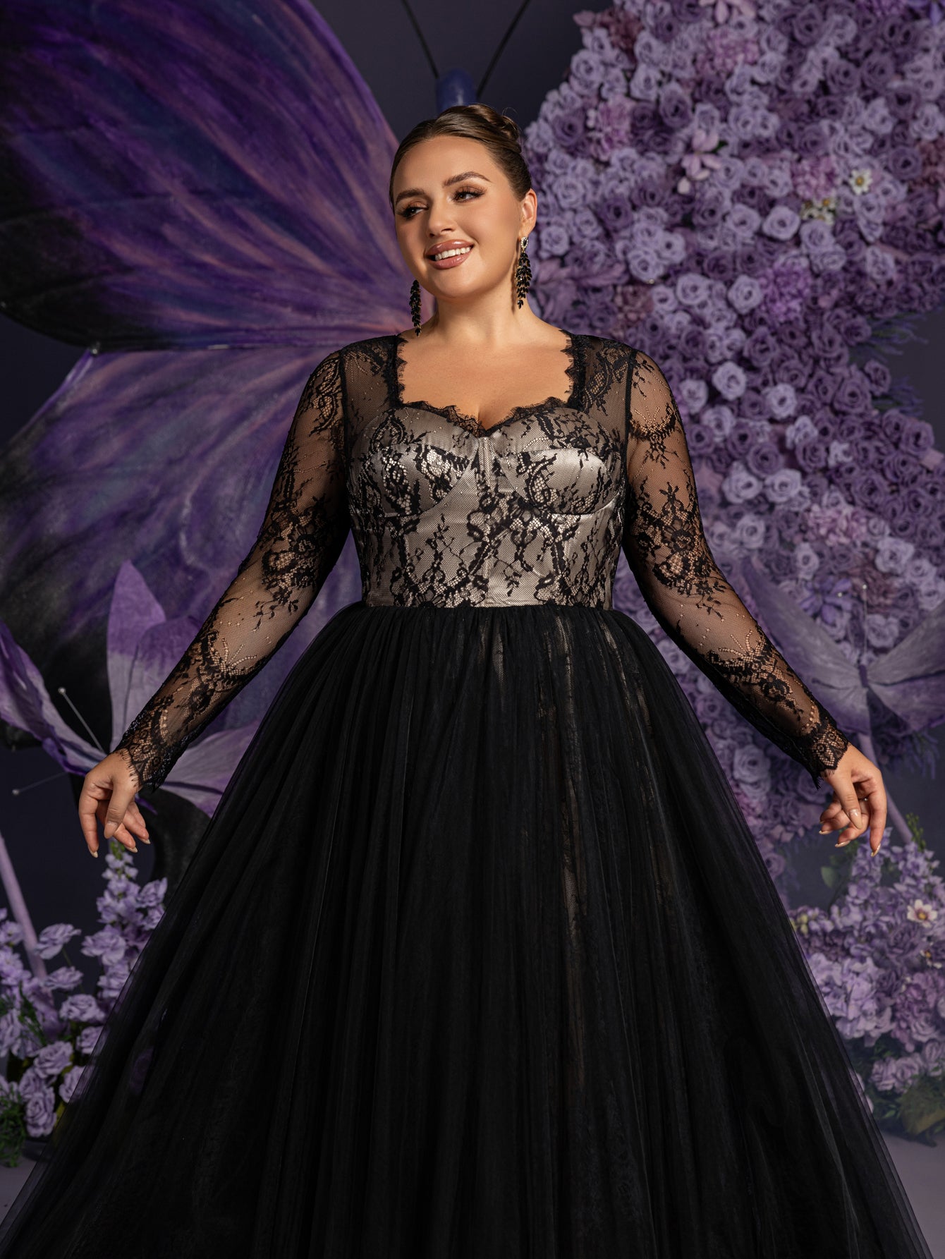 Plus Sweetheart Neck Lace Bodice Contrast Tulle Hem Evening Gown Wedding Dress