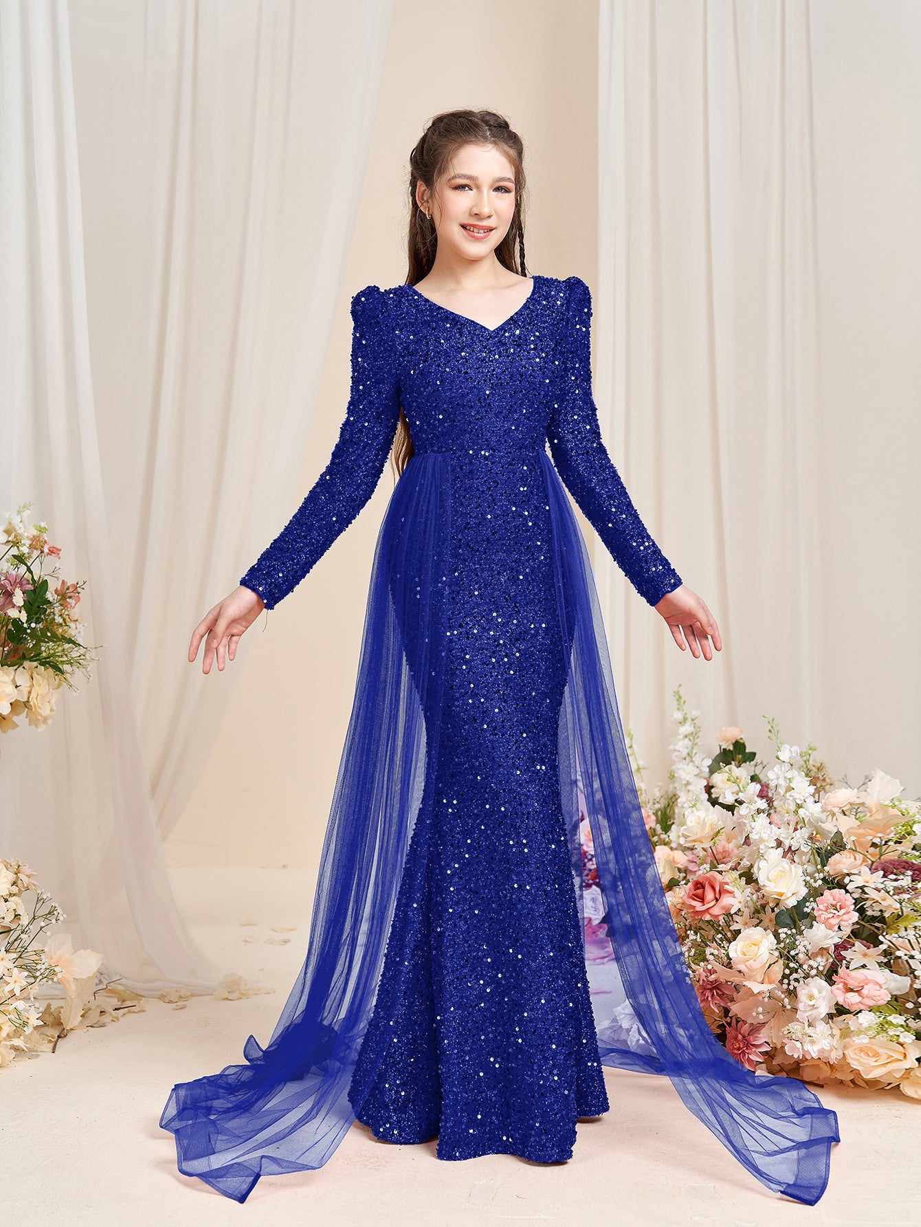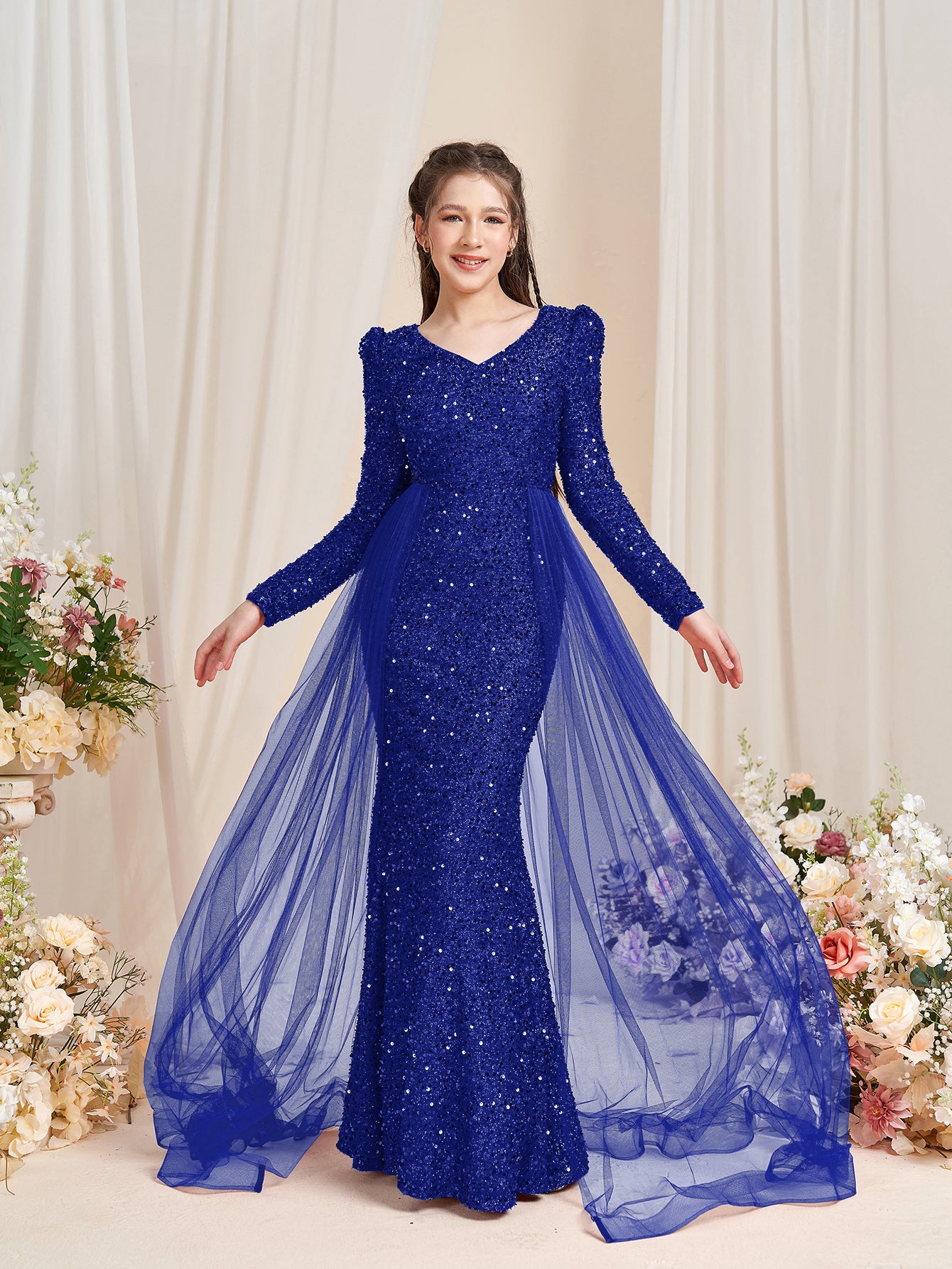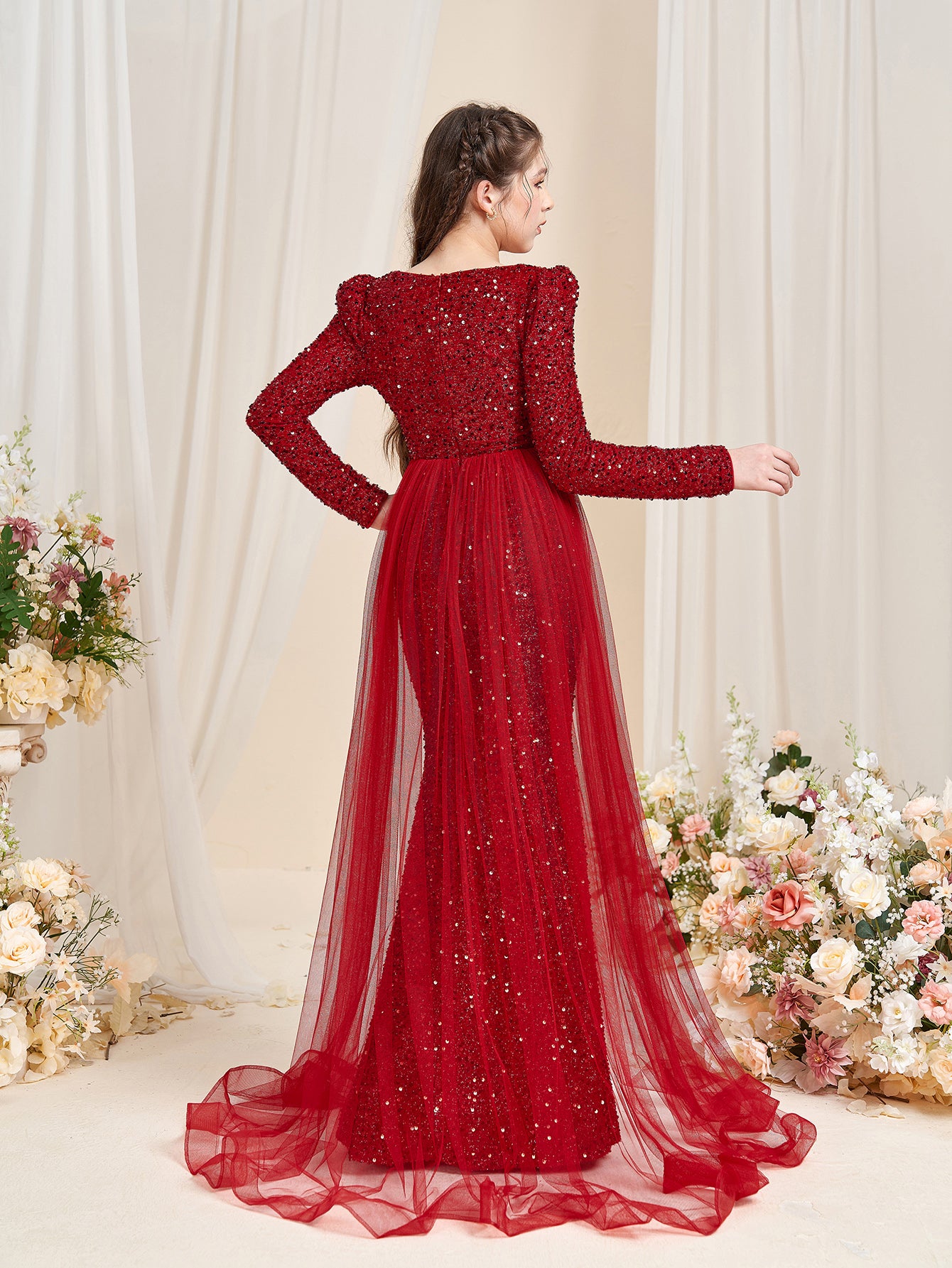 Teen Girls' Long Sleeves Mesh Overlay Sequin Mermaid Dress