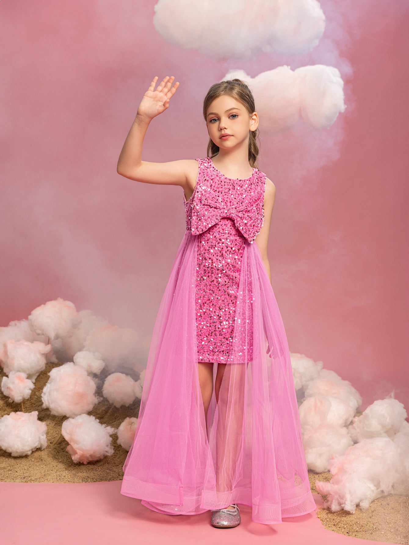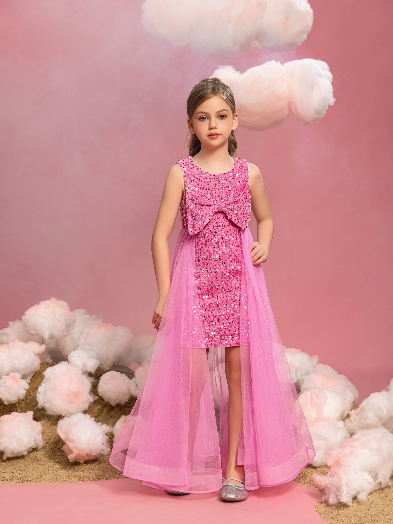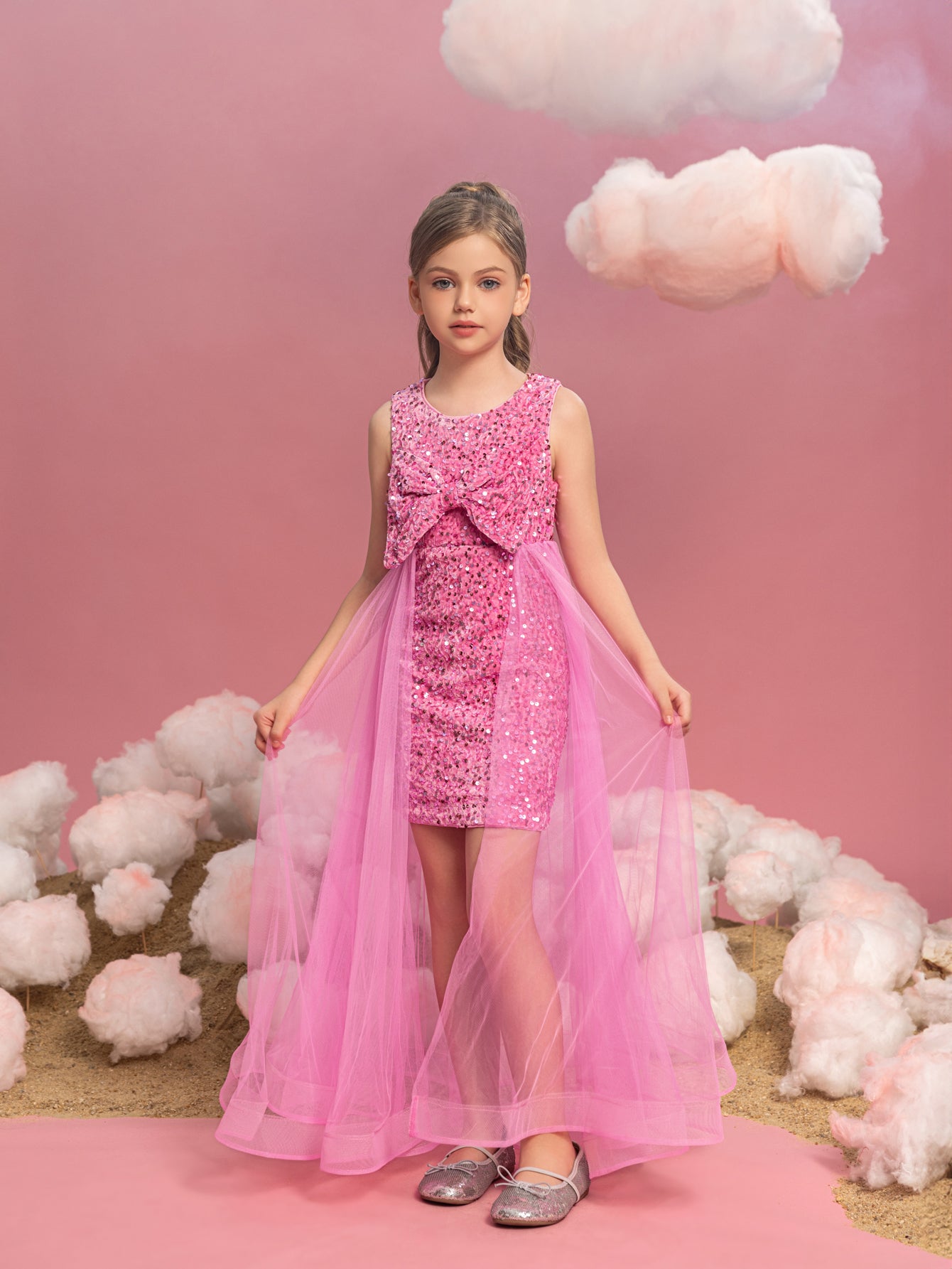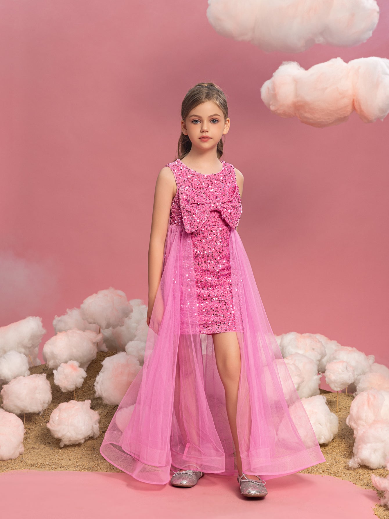 Tween Girls' Bow Front Mesh Overlay Sequin Mini Dress - Elonnashop
