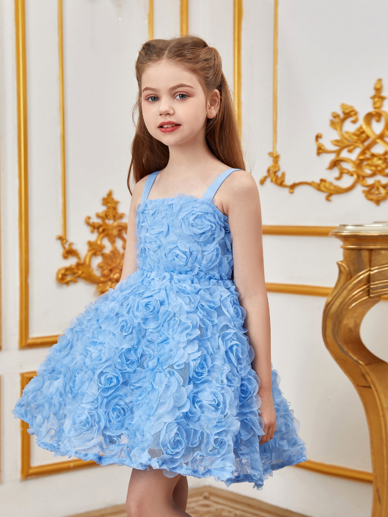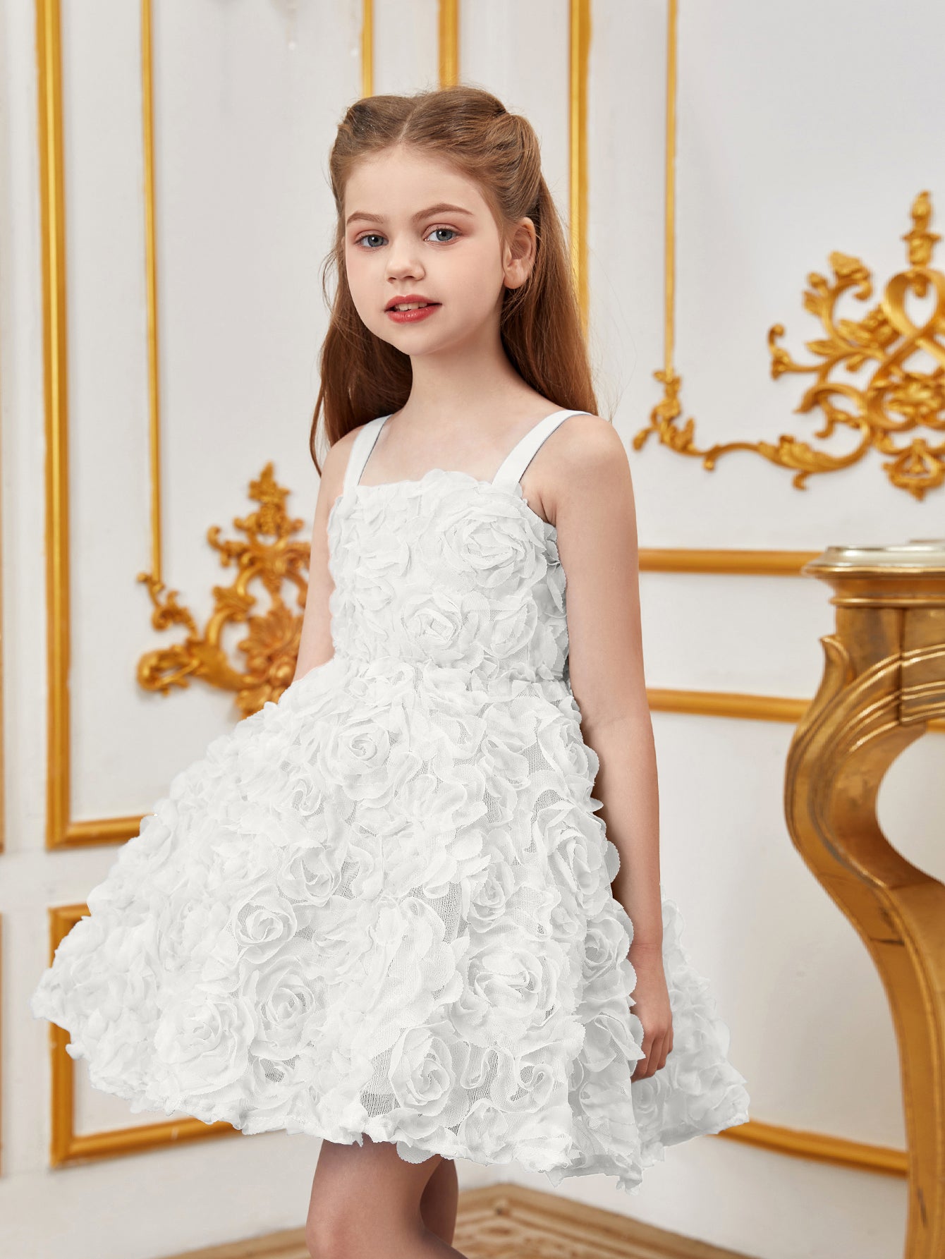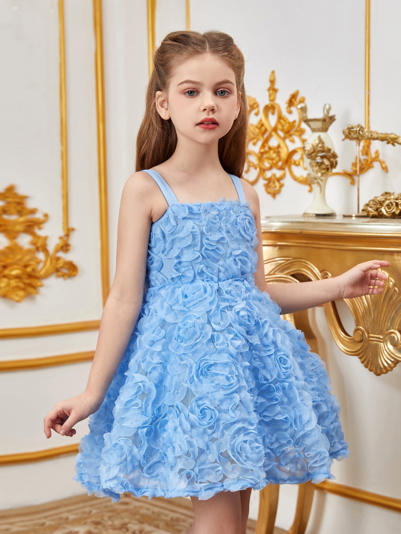 Elevate your little one's style with our stunning floral dress, perfect for making a grand entrance at any occasion. This dress features a square neckline and a fitted bodice that flares out into a full, flowy skirt adorned with beautiful floral appliqués. The lightweight, airy fabric ensures comfort and ease of movement, while the sparkling silver shoes add a touch of elegance.