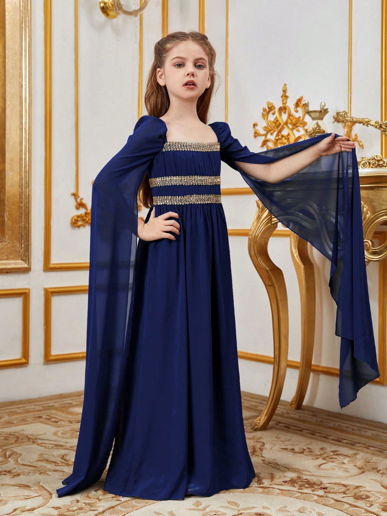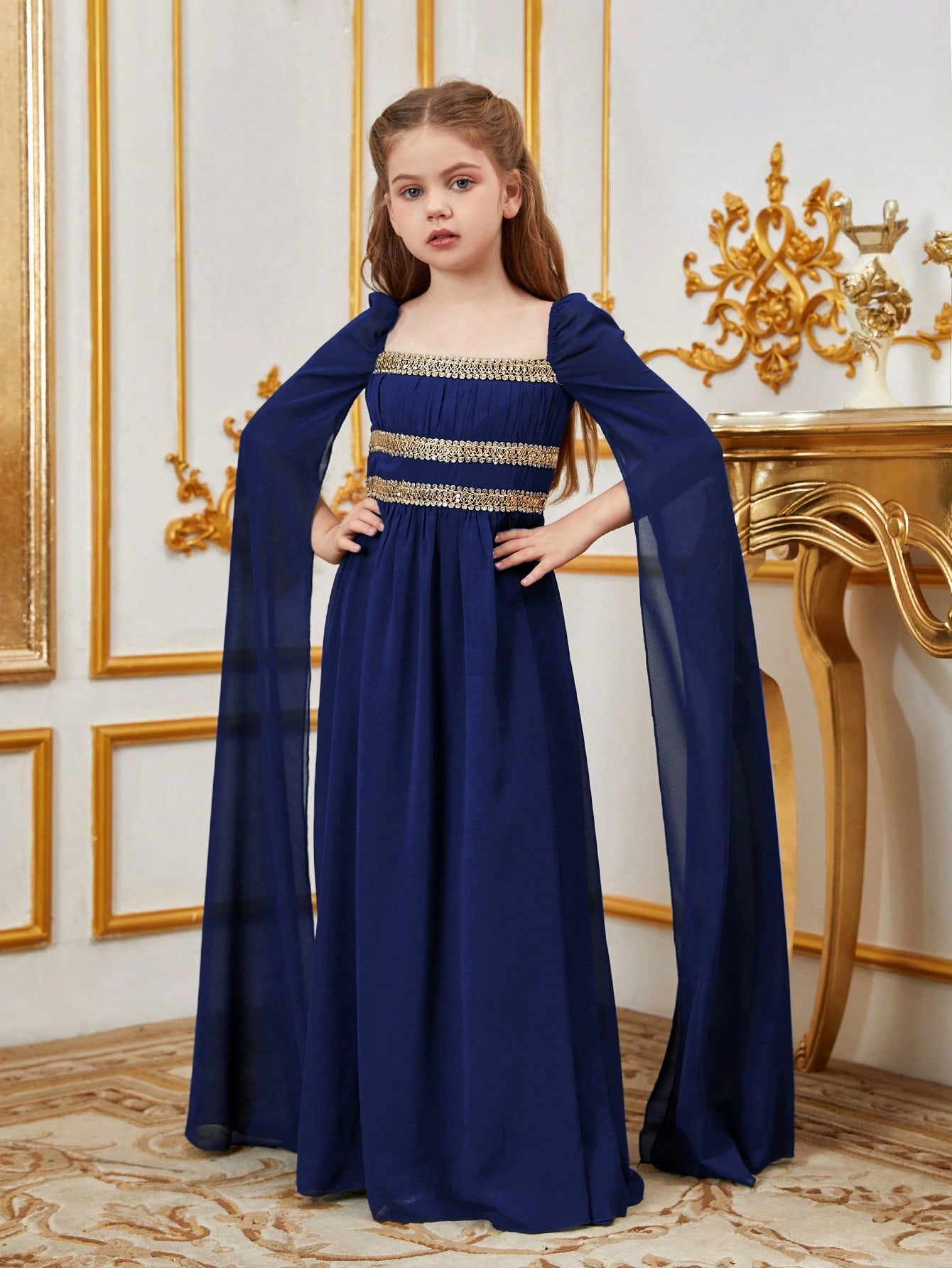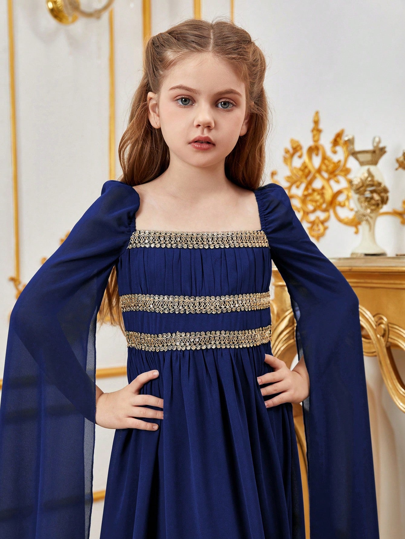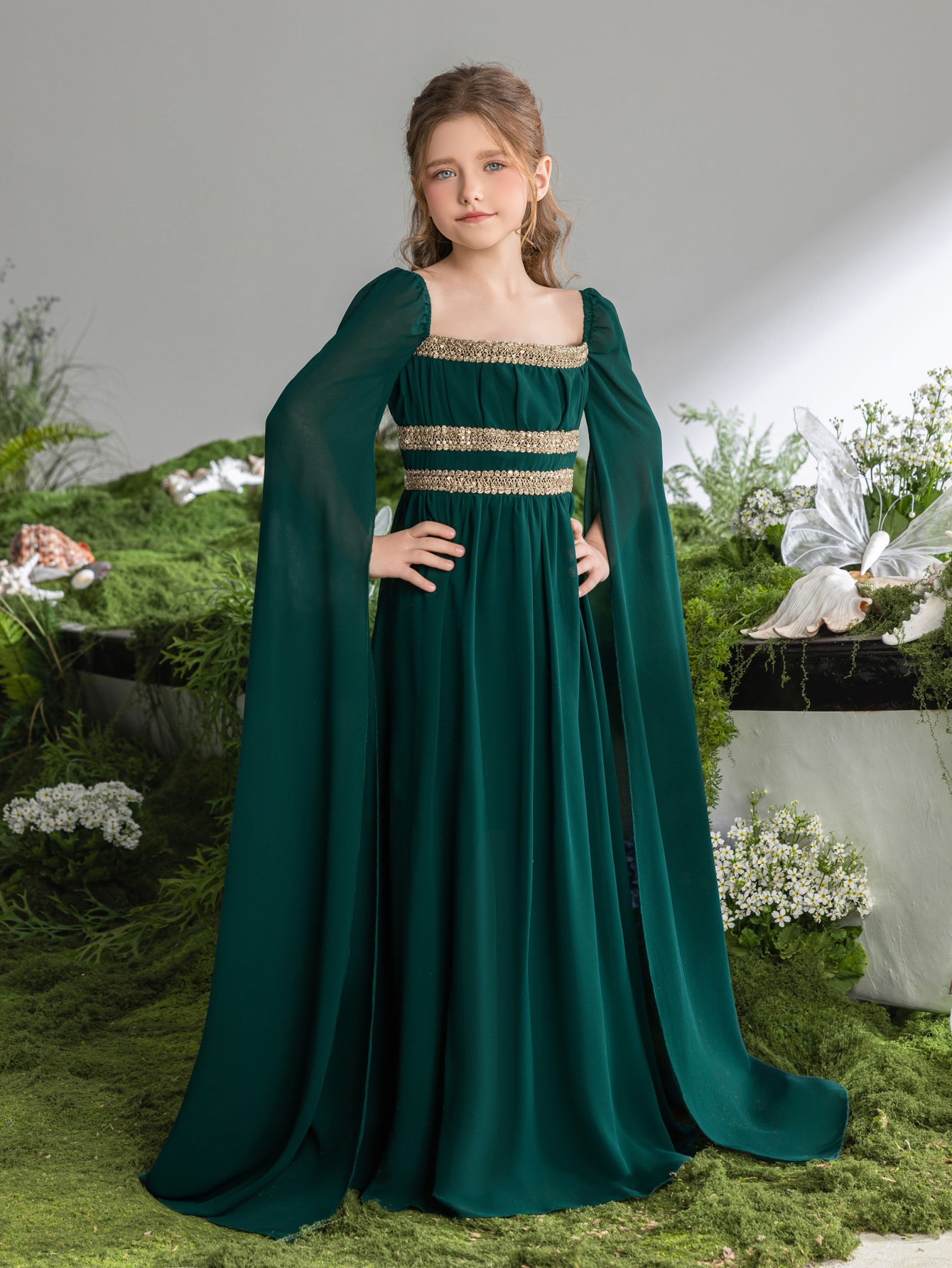 Tween Girls' Lace Trim Decoration Cape Sleeves Chiffon Party Dress
