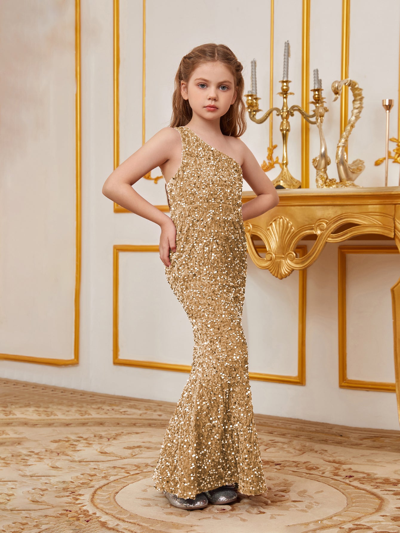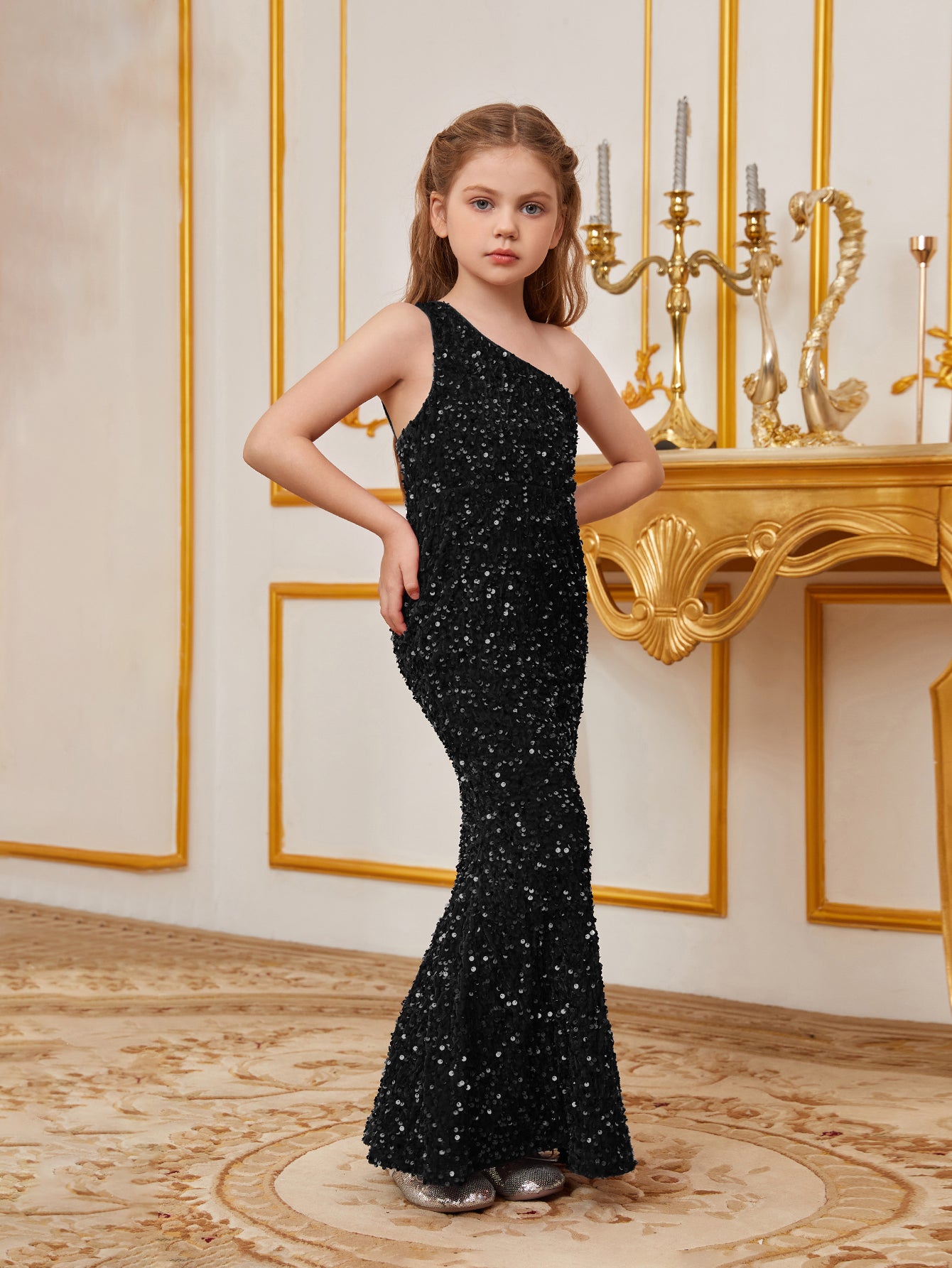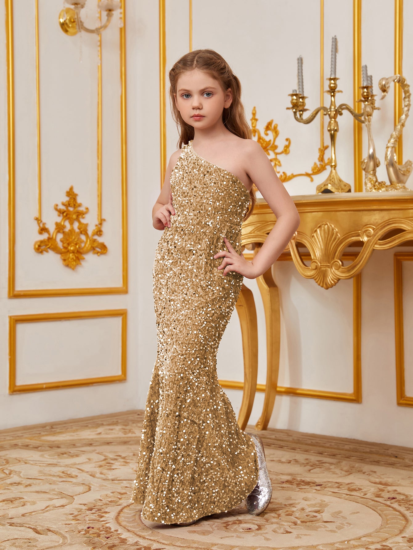 Dazzle in our stunning sequined gown, perfect for making a memorable impression at any special occasion. The gown features a one-shoulder neckline that adds a touch of sophistication and elegance. The full-length silhouette flatters the figure, ensuring a graceful and polished look.